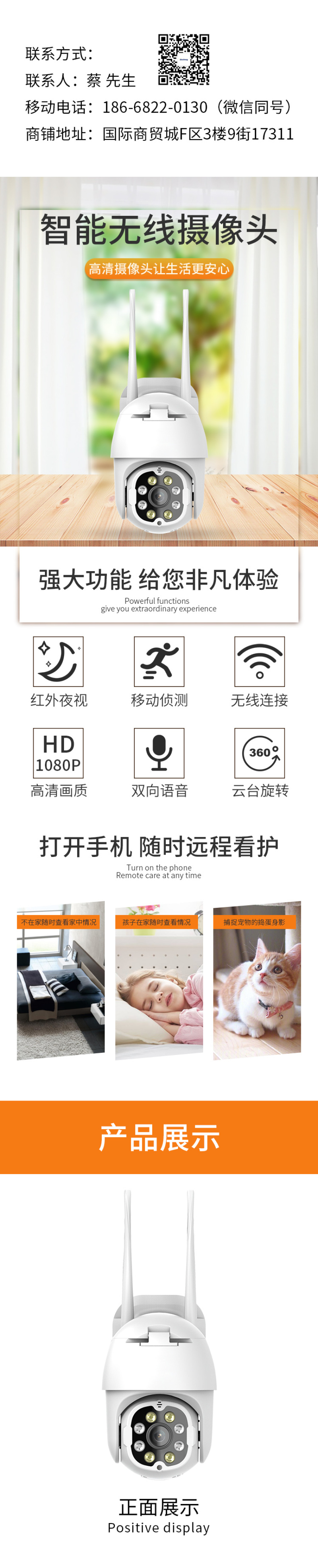 Wireless camera wifi smart network remote mobile phone hd night vision home indoor monitor