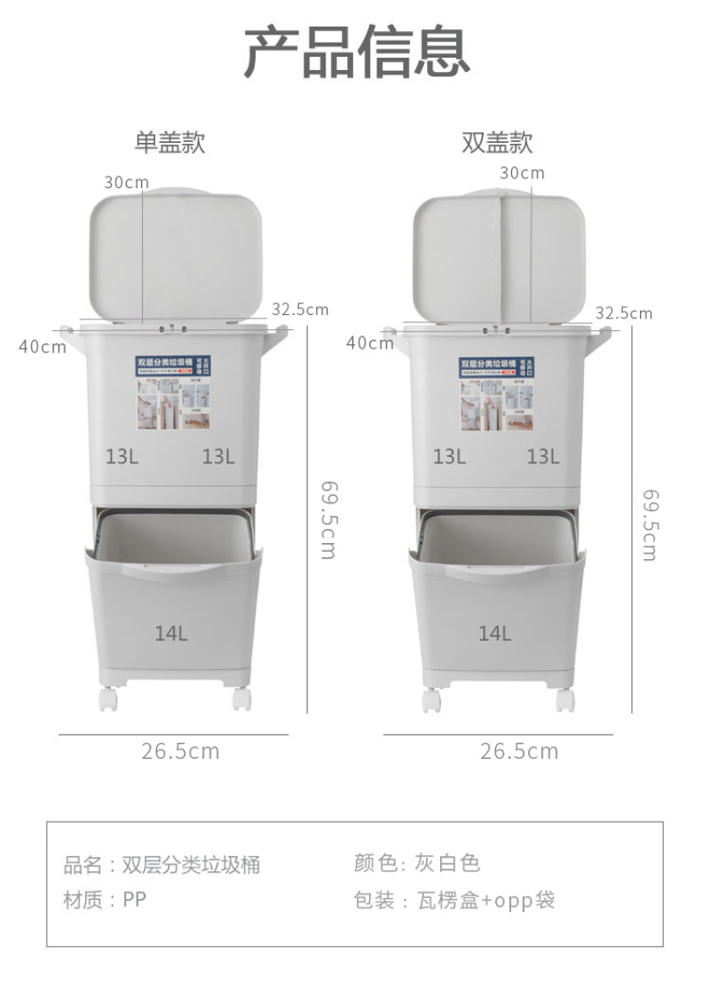 【Product Color】: Grayish White 【Product Size】: 26.5*30*69.5cm 【Product Material】: PP 【Packing Method】:Carton 【Packing Quantity】: 1PCS 【Product Box Specifications】: 34*30*40CM 【Whether custom processing is available】: No