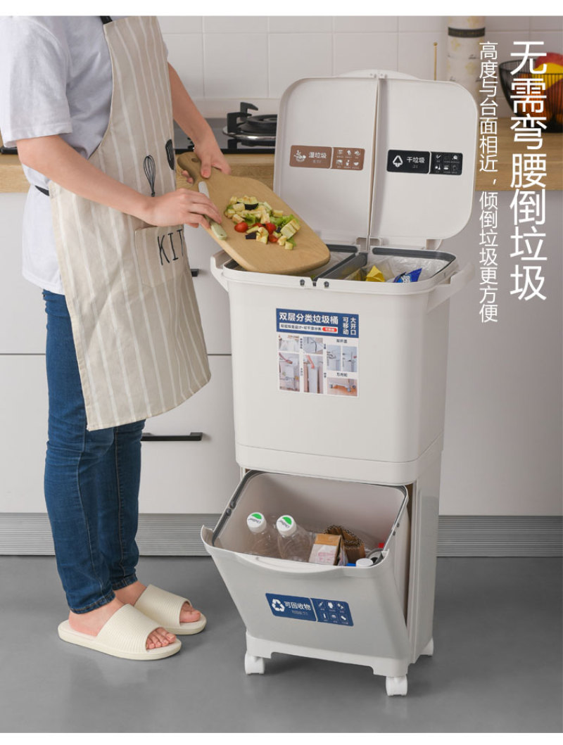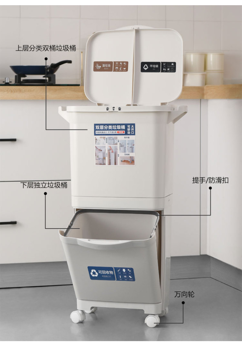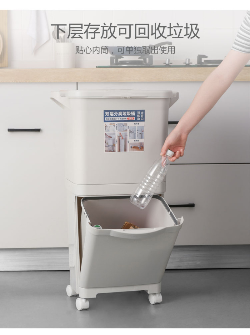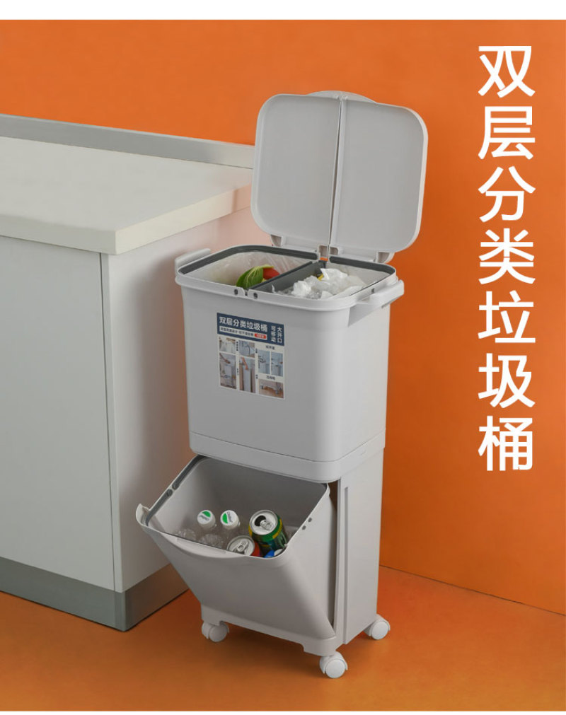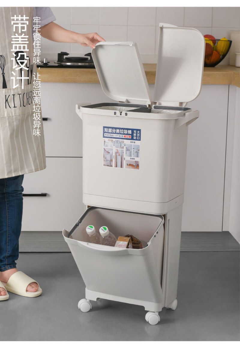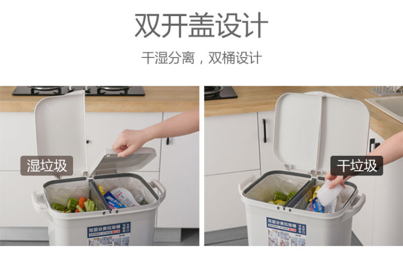 【Product Name】: Categorical Waste Bin - Single Lid, Double Lid - 40L