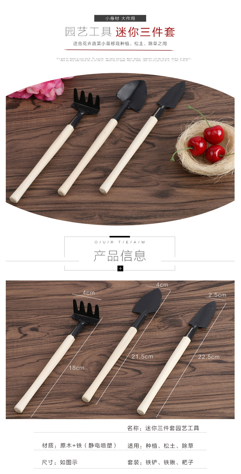 3-piece set of gardening tools home flower shovel rake shovel planting flower potted succulent plant loosening tools
