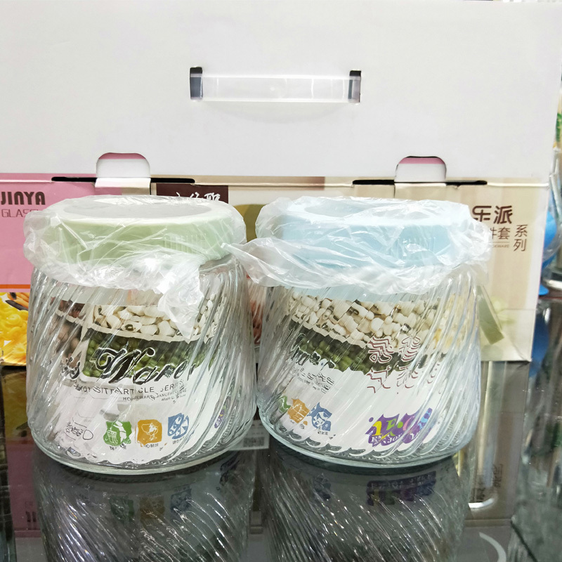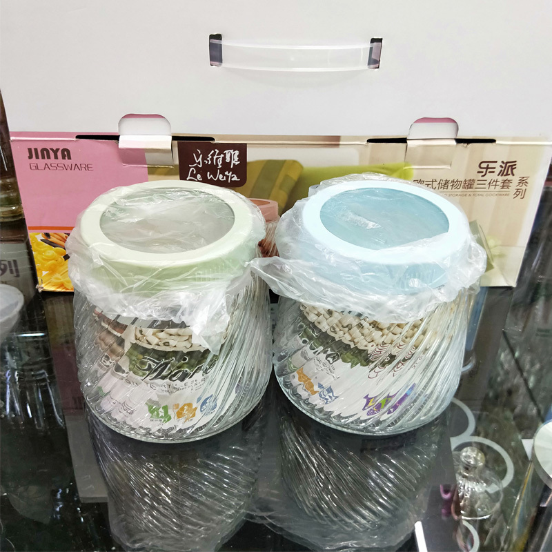 Transparent glass jar three piece set glass storage jar airtight caniste