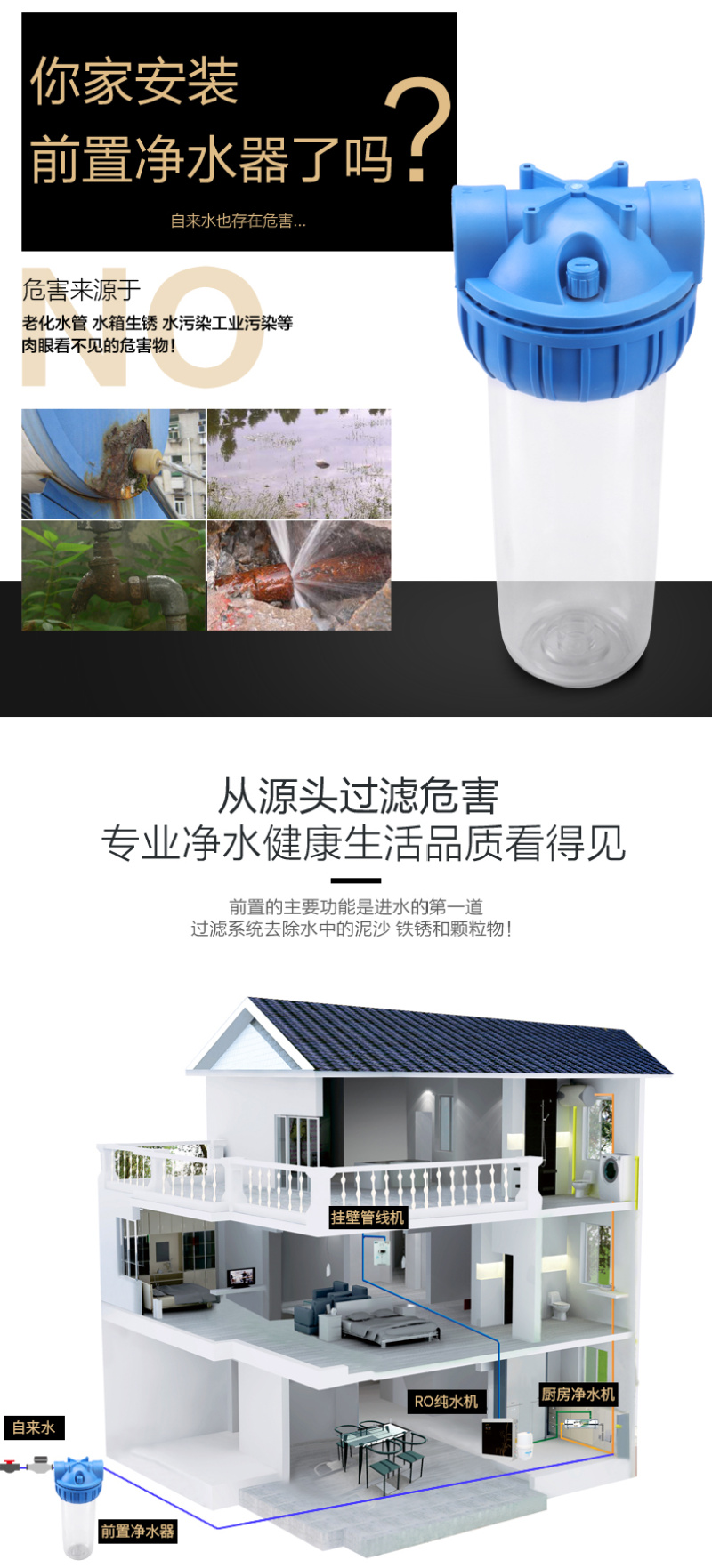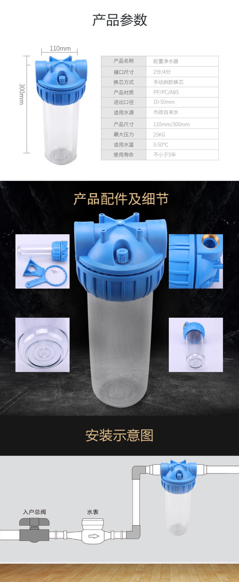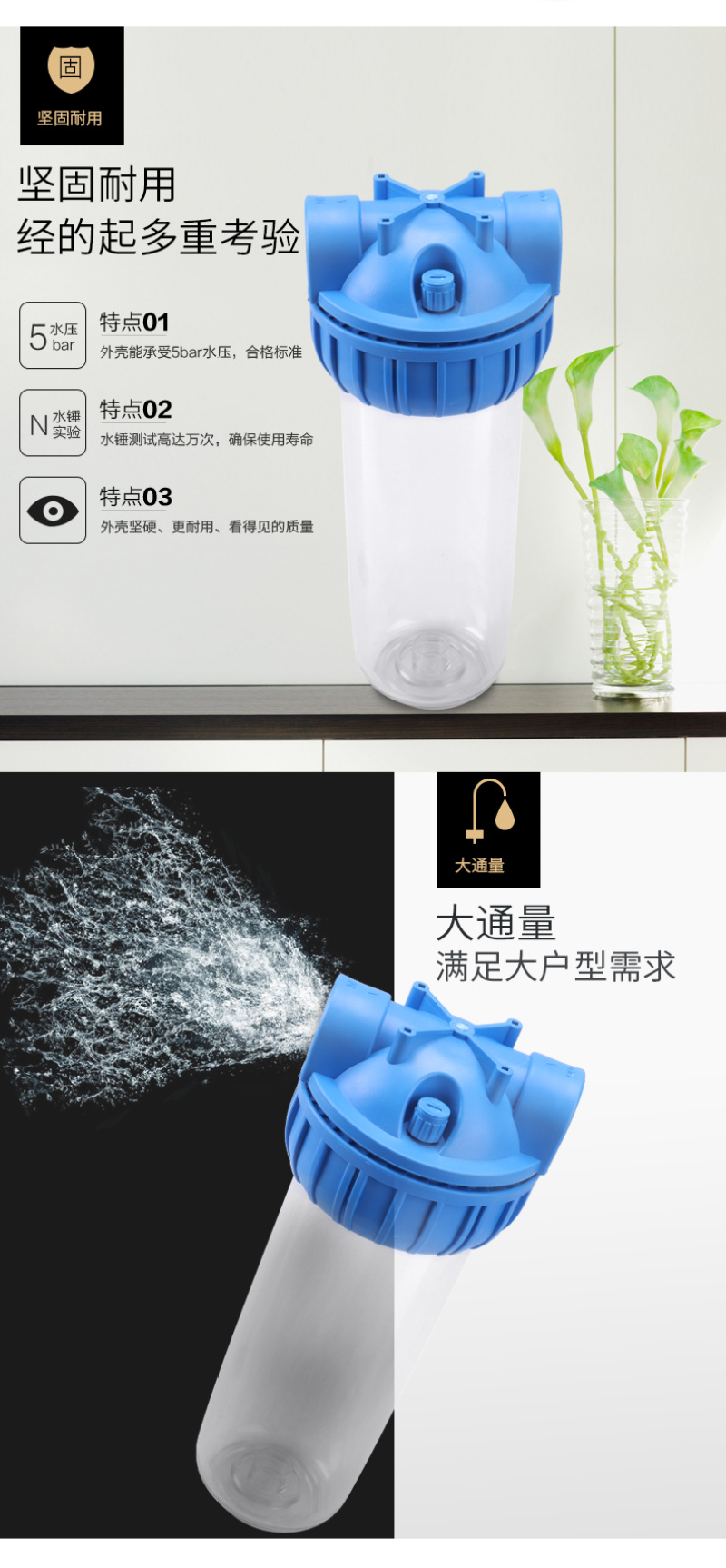 10-inch water purifier 2 points 4 points explosion-proof transparent front 3 points quick connection filter pure water machine shell