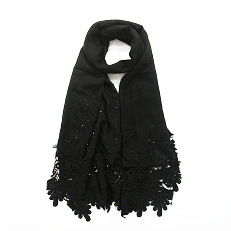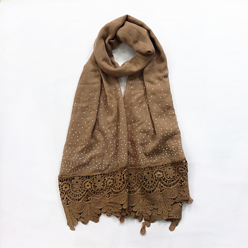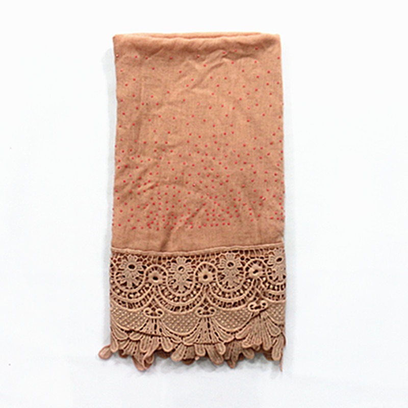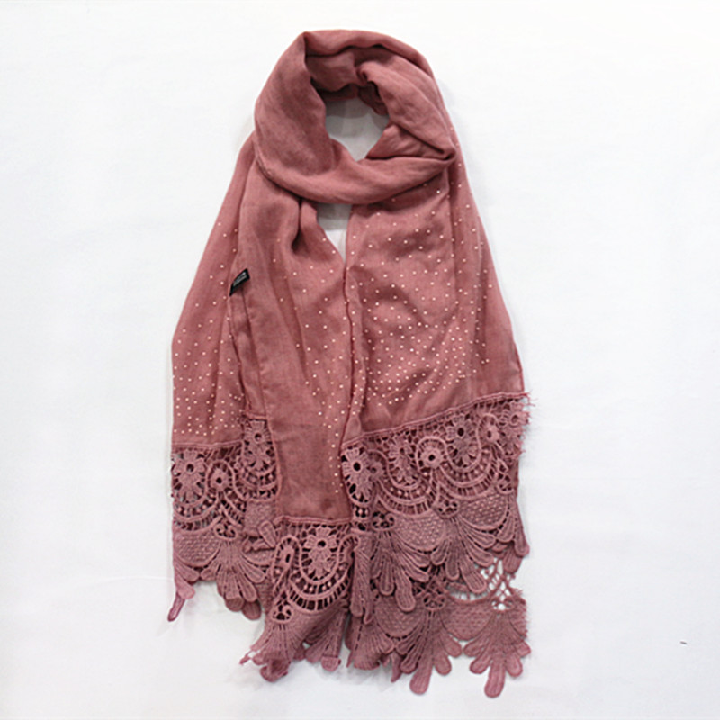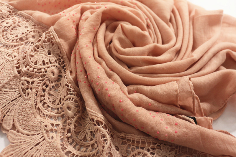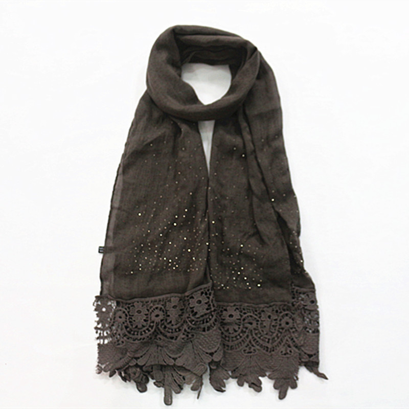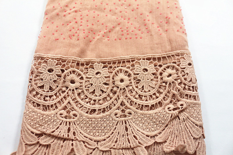 Pure color two-tone lace edge cotton linen scarf