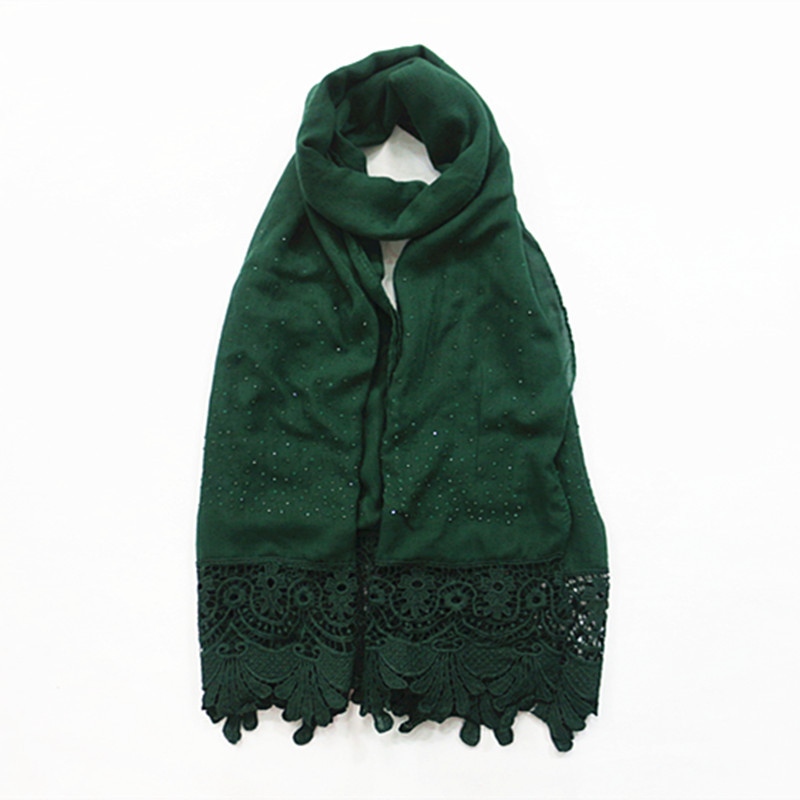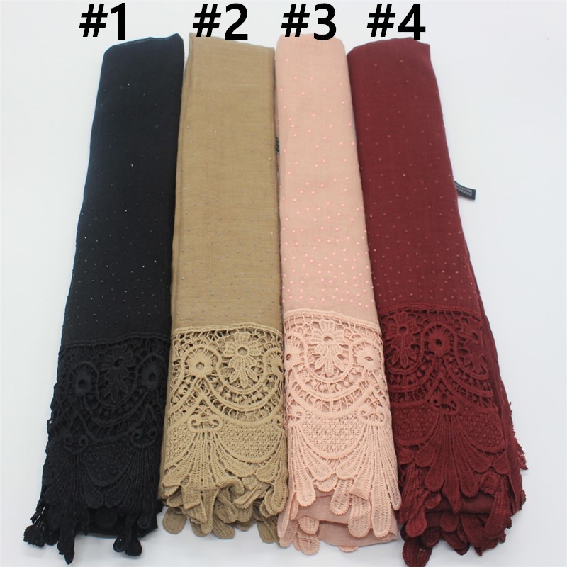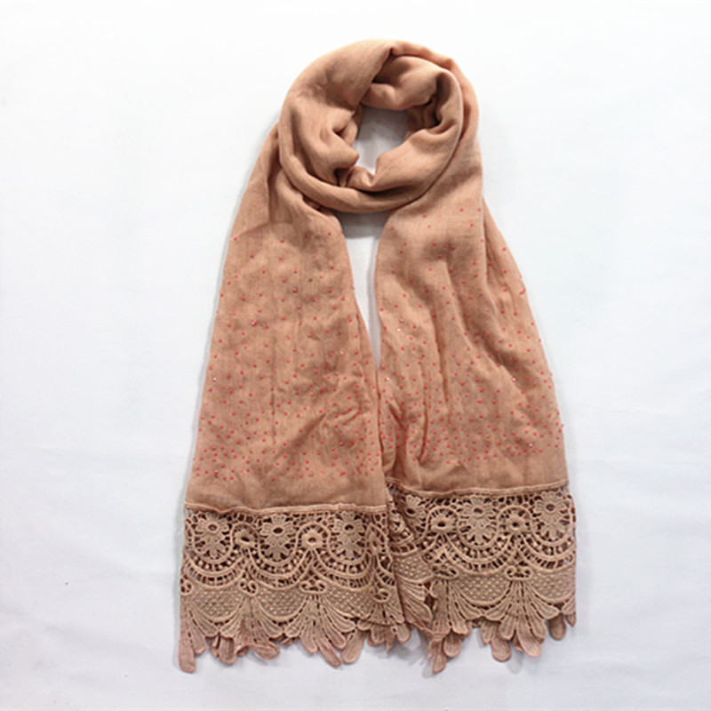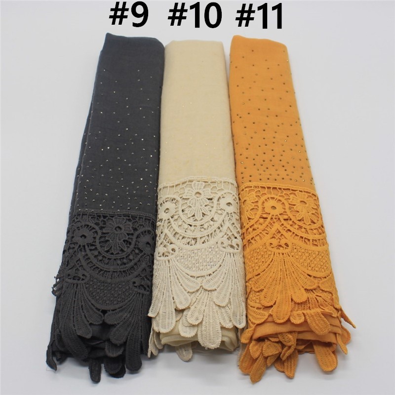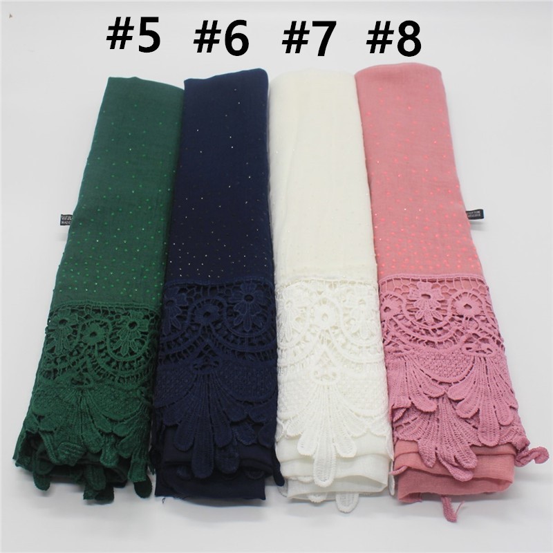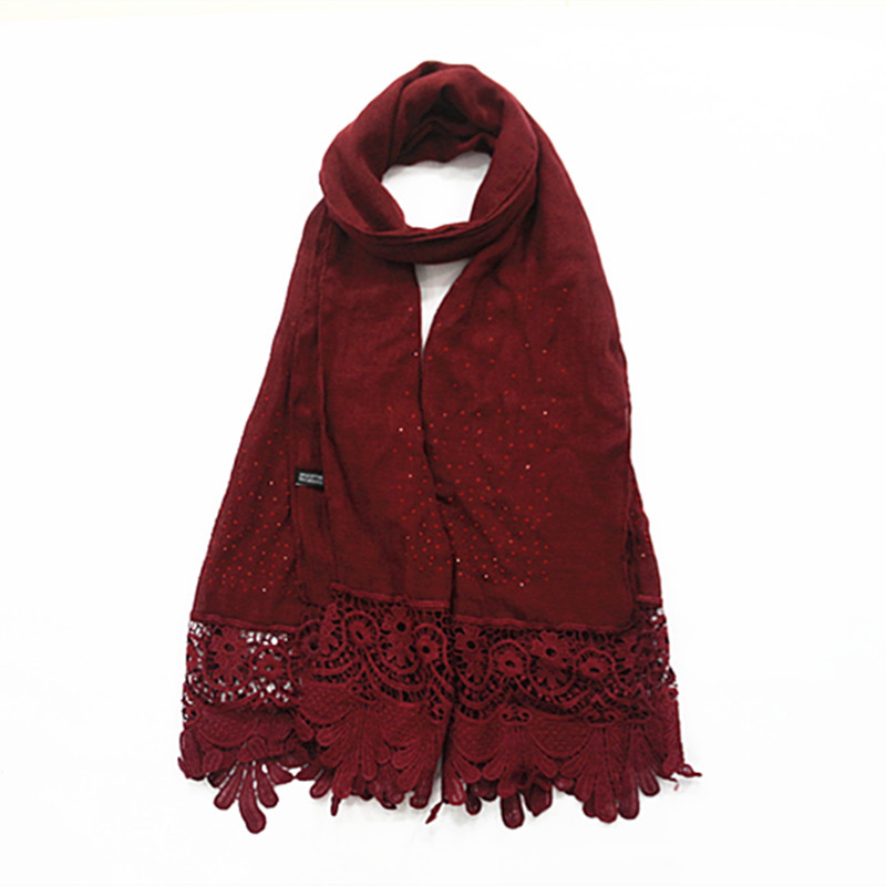 Pure color two-tone lace edge cotton linen scarf