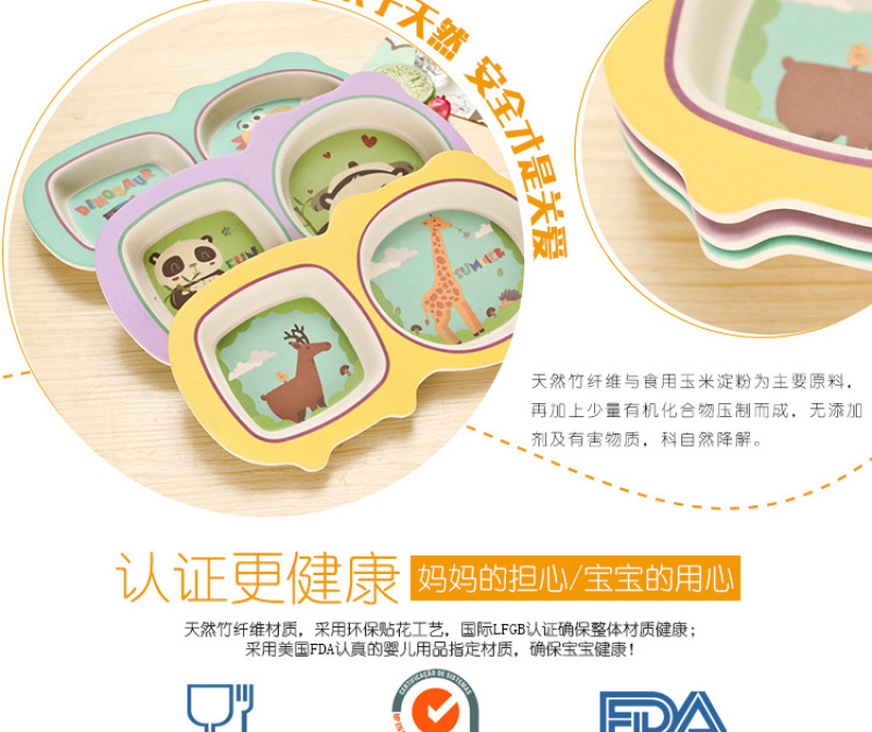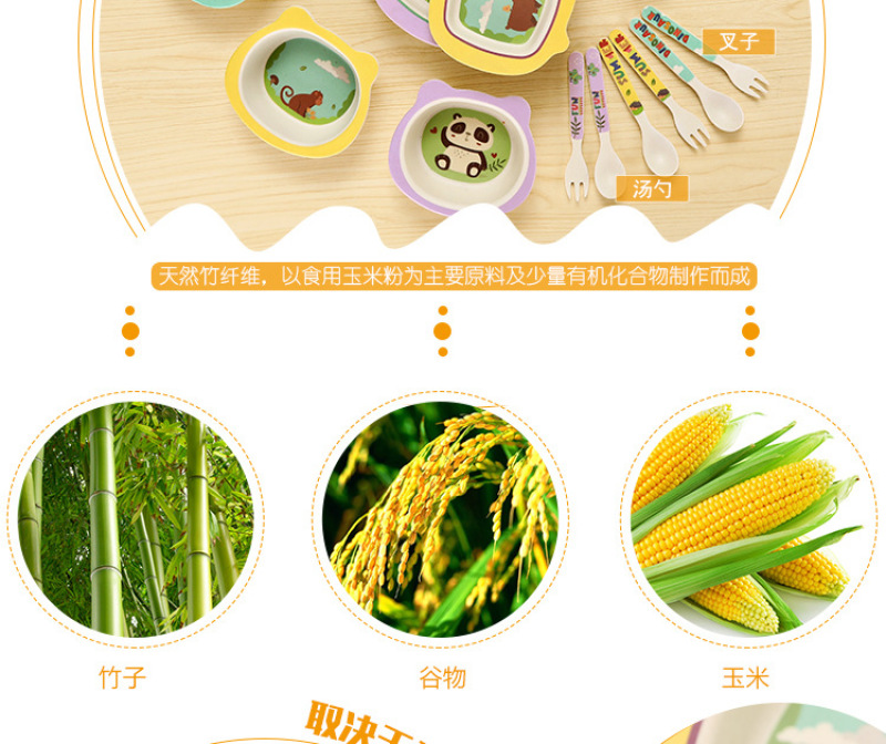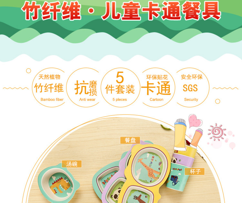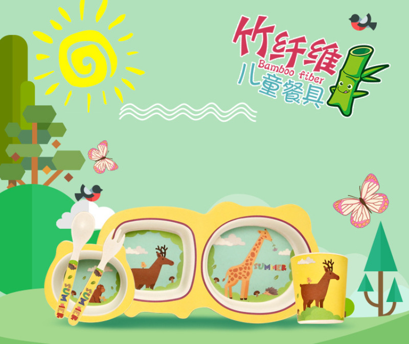 environmental protection bamboo fiber children's tableware new dinner plate 5-piece set baby cartoon rice bowl spoon fork cup
