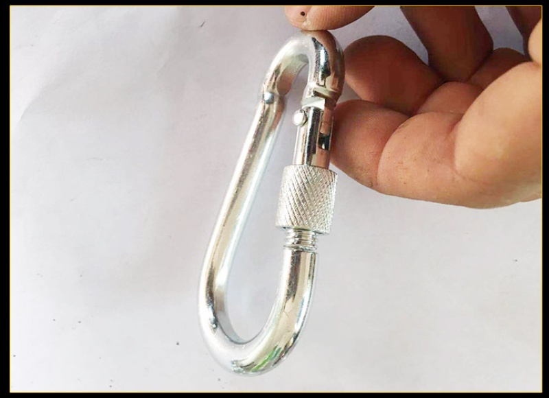 Customized iron hoist type mountaineering buckle spring hook with female safety hook for mountain camping