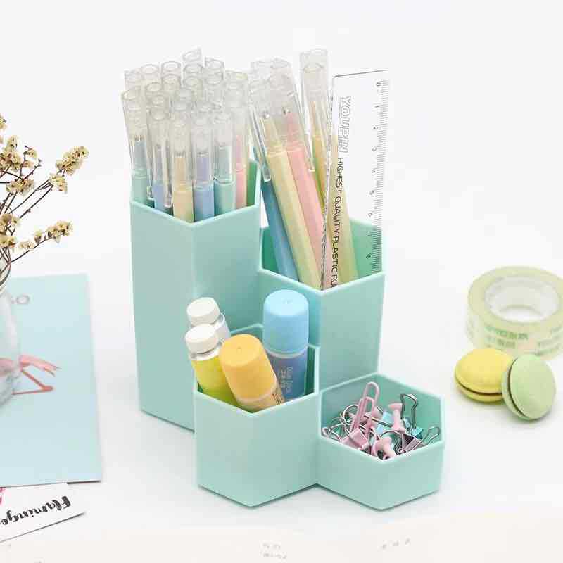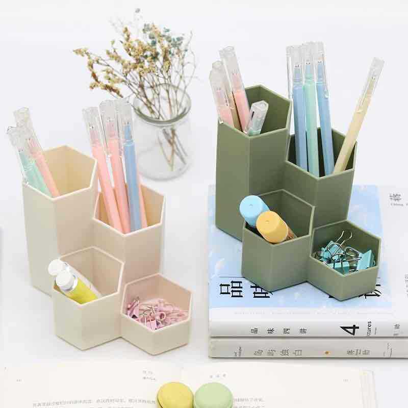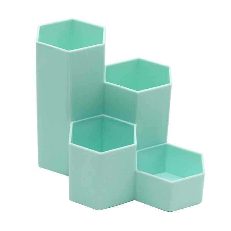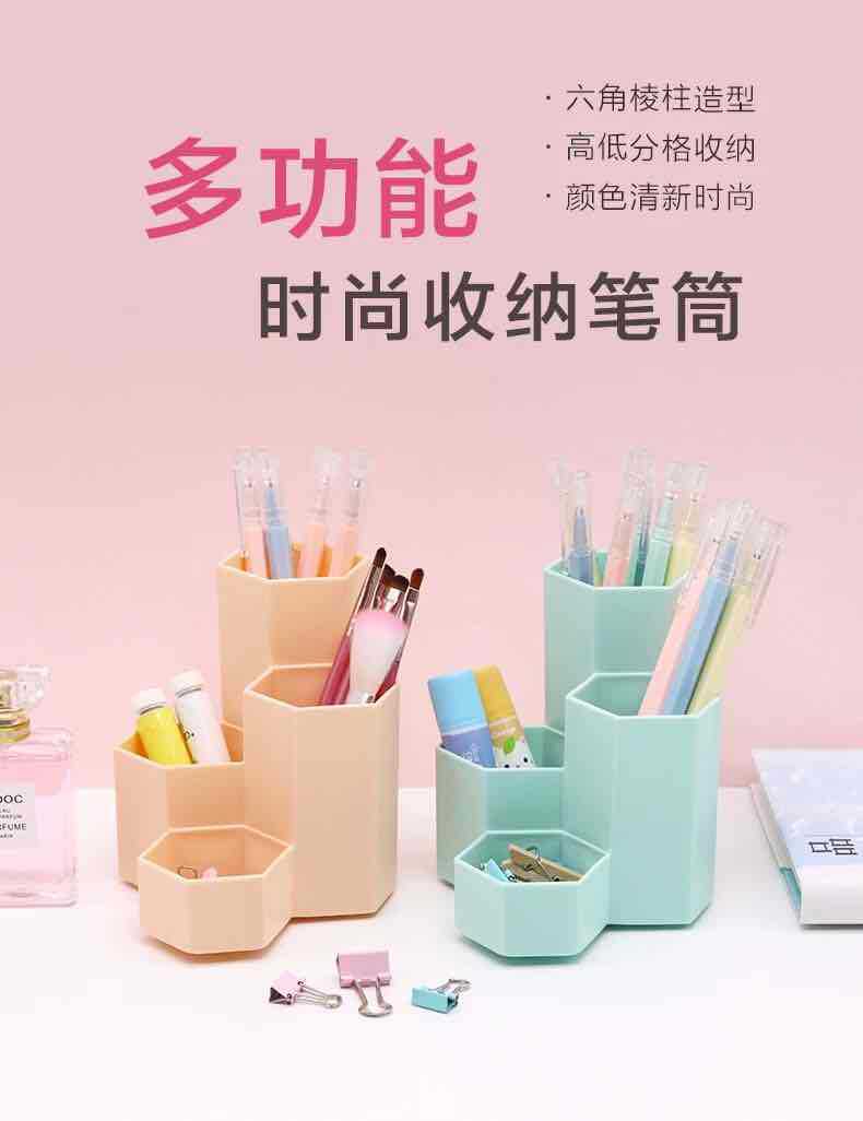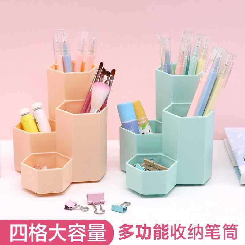 factory direct hexagonal pen holder multi-functional four-grid fashion cosmetics storage box office student desktop organizing box
