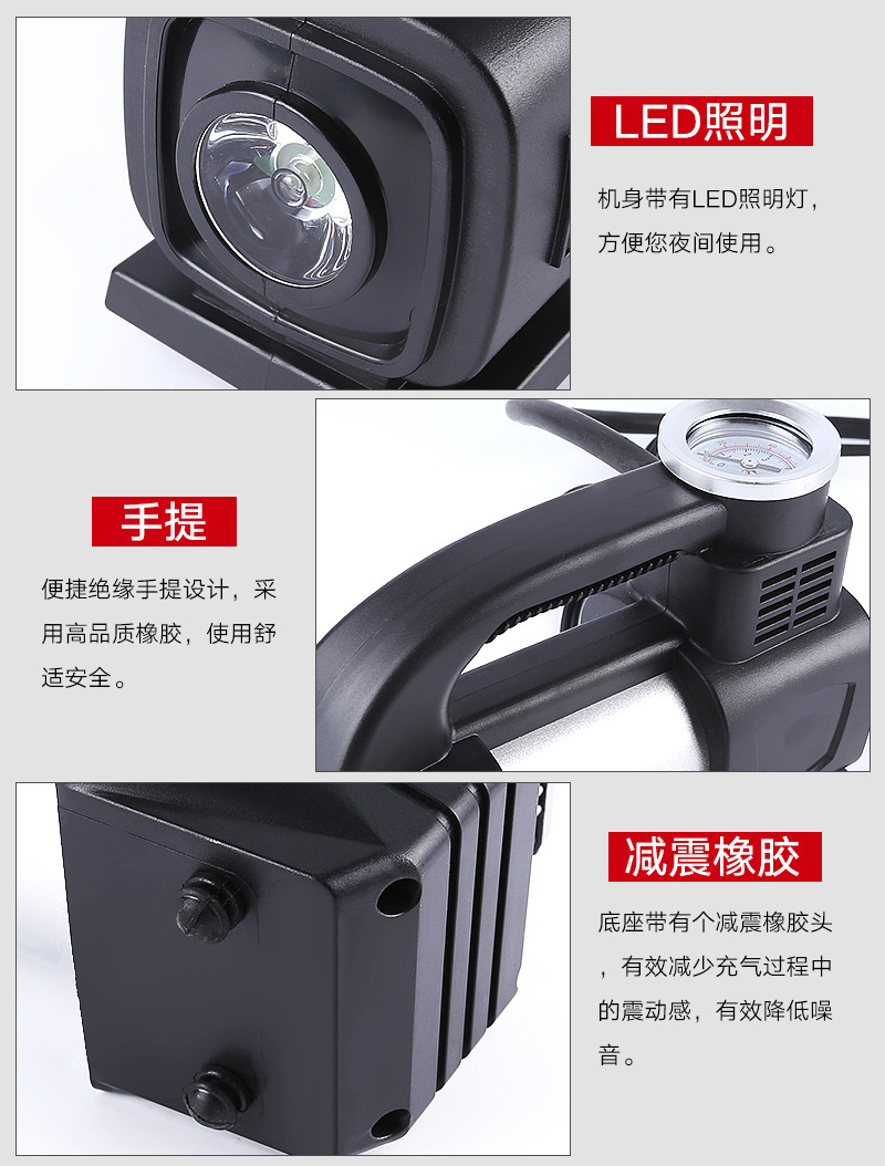 automobile air pump factory direct sales portable single cylinder tire air pump high power with light vehicle air pump