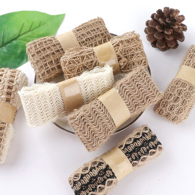 Lace linen roll lace hemp rope decorative rope handmade DIY cotton hemp materials retro woven wide flat hemp ribbon