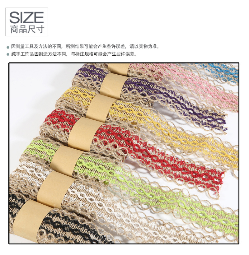 About Product:Lace linen roll lace hemp rope decorative rope handmade DIY cotton hemp materials retro woven wide flat hemp ribbon