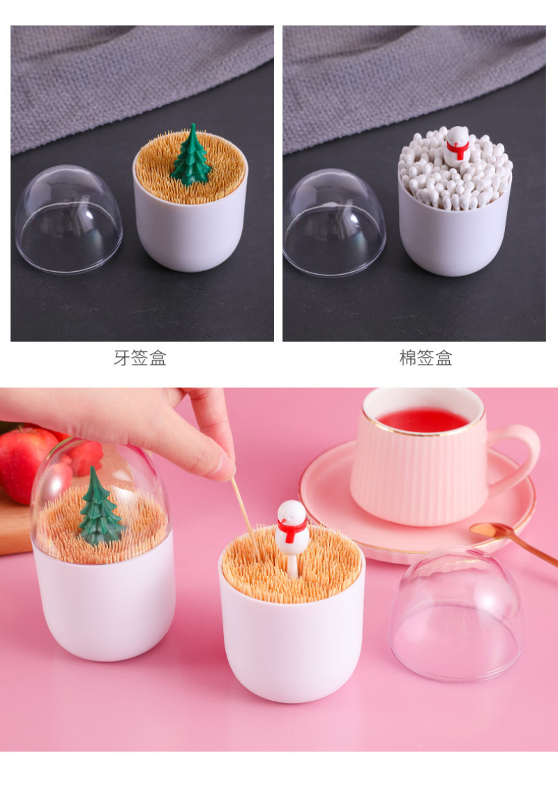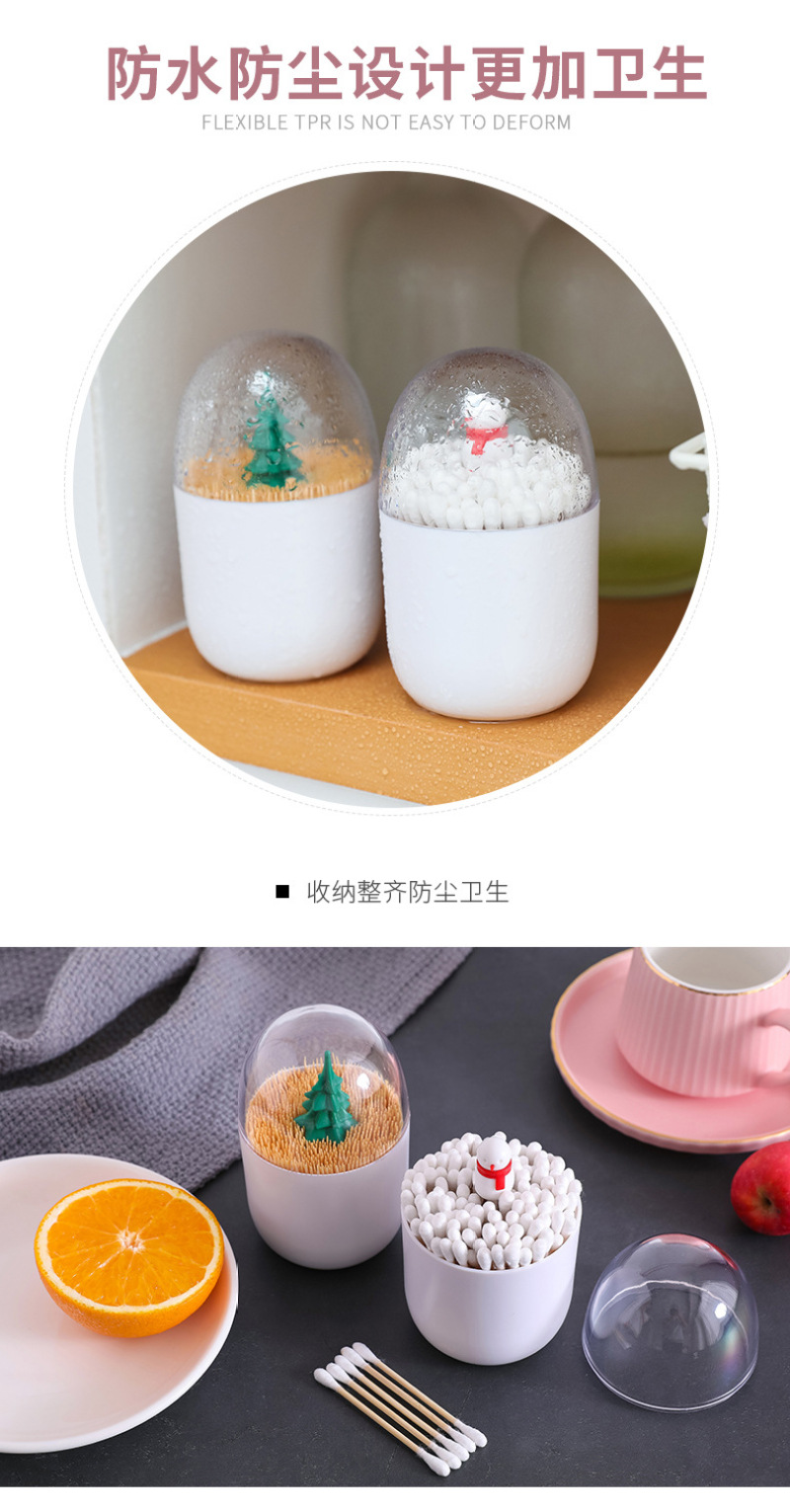 Creative Christmas Combination Cotton Swab Box, snowman Toothpick Box, dust-Proof Cotton Swab Box with Lid