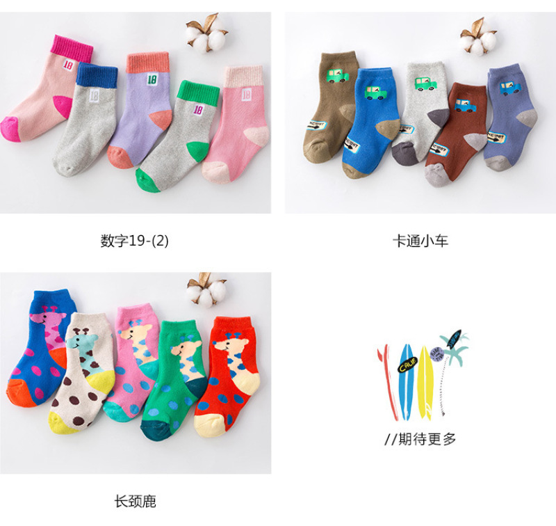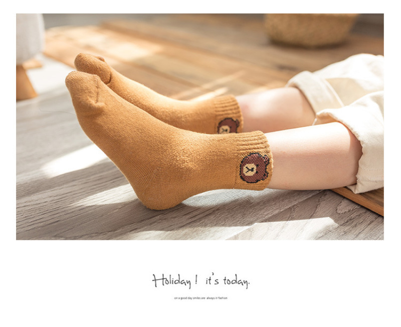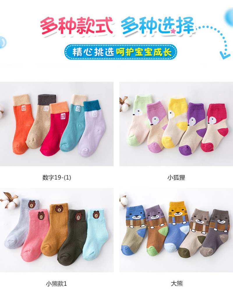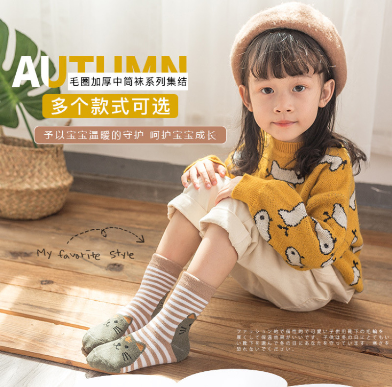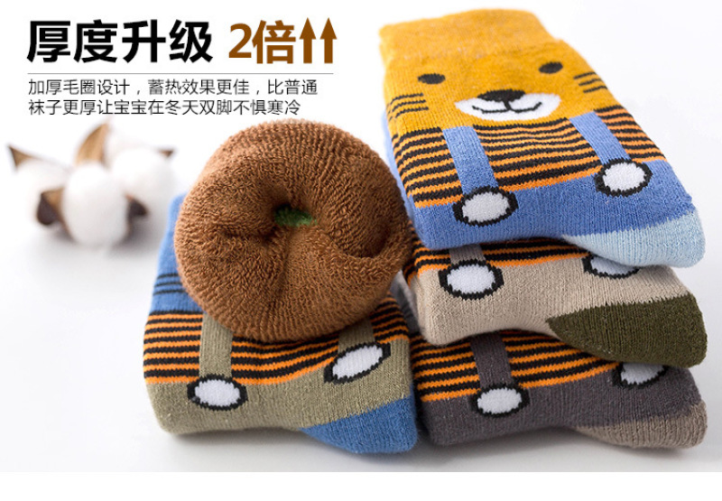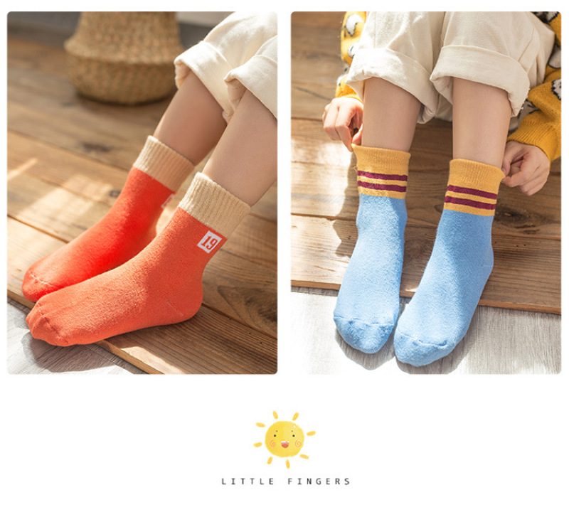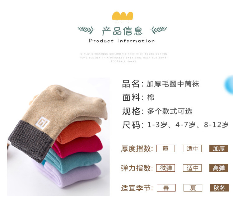 All-cotton woollen socks for children inwinter with thickening and fleece insulation medium hosesolid colorcotton socks