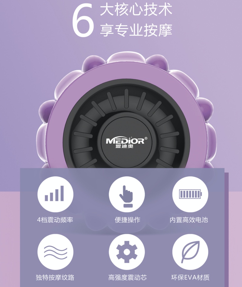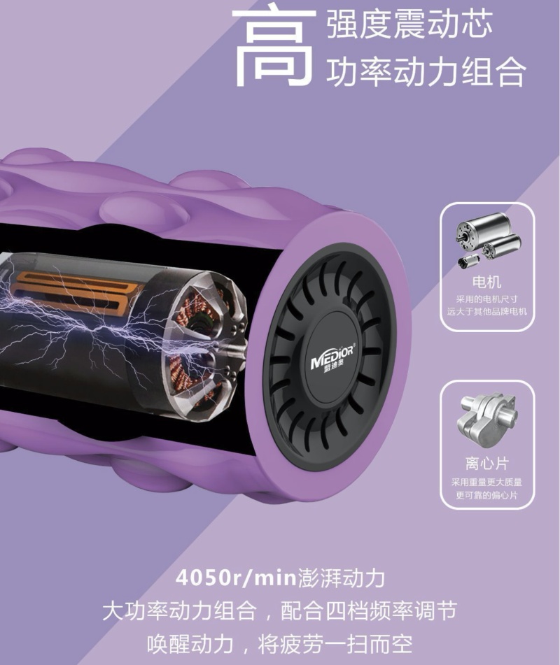 Mondio solid spike vibration massage stick electric massage foam shaft muscle relaxation fitness thin leg yoga column