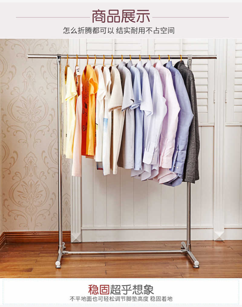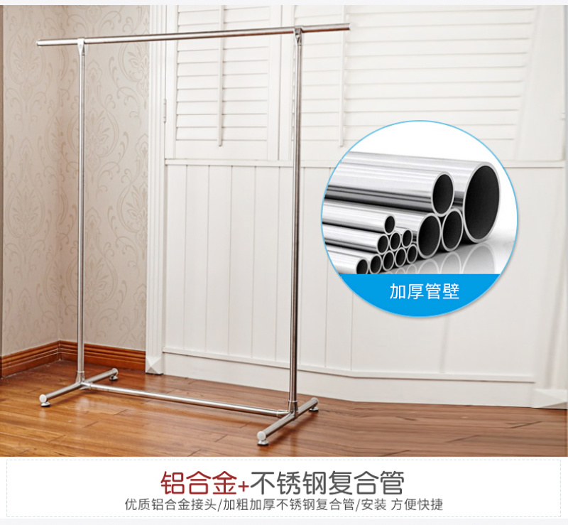 Clothes-rack floor single stainless steel clothes-rod drying rack household simple telescopic shelf indoor