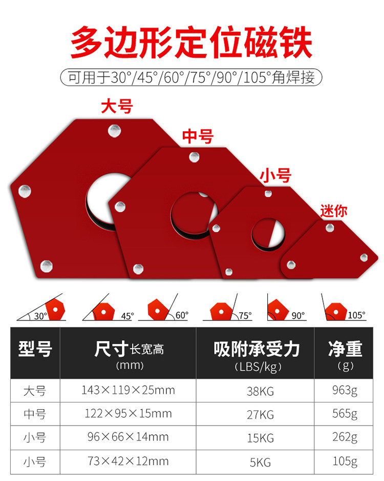 About Product:Origin: Mainland China imported: no brand: wholesale item No.: wholesale model: Triangle small, triangle medium, Triangle large, Mini, six-side small, six-side medium, six-side large model, small magnetic grounding device, large magnetic grounding device, Universal Locator adjustment model, torch bracket locator, [right angle] welding locator, [oblique angle] welding locator material: iron set quantity: other scope of application: Household Weight: Other (kg) system: other size: Other whether cross-border supply: no series: Other