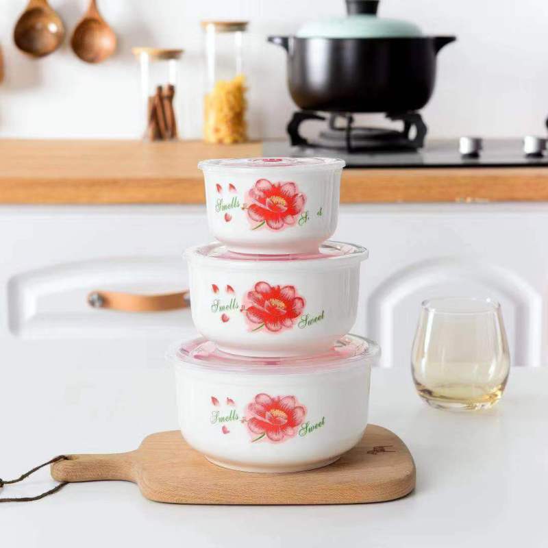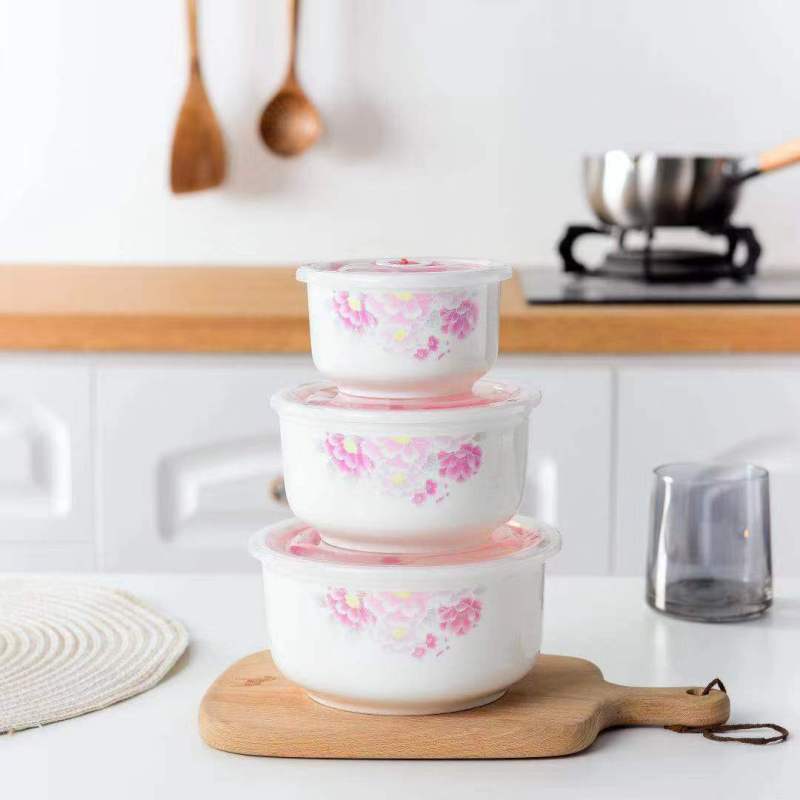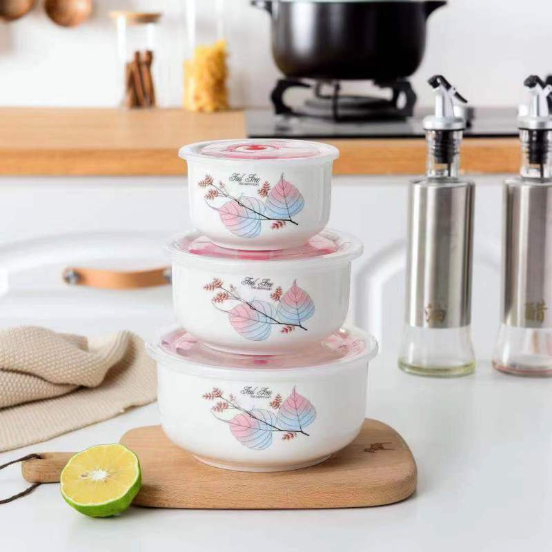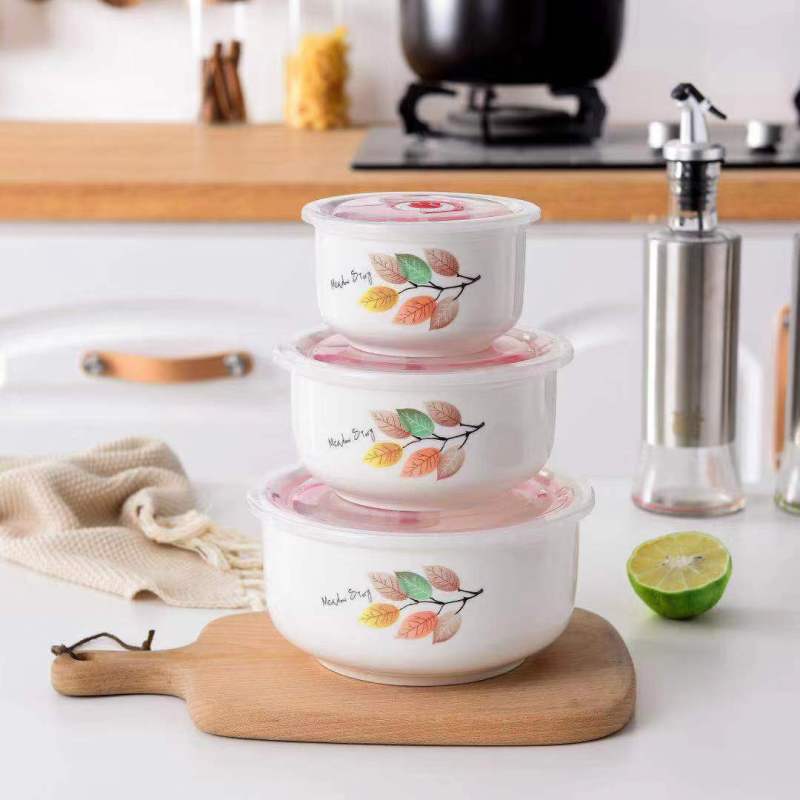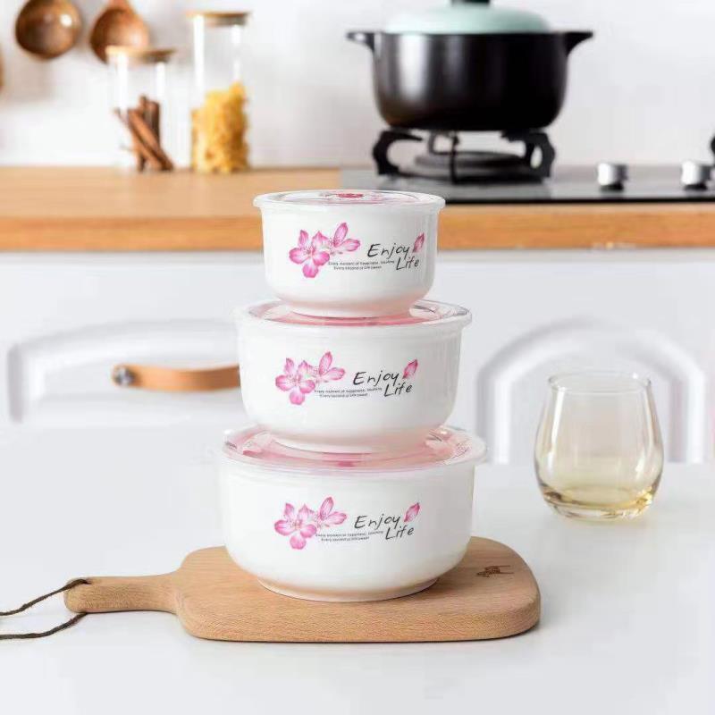 ceramic freshness bowl three-piece set gift set microwave oven dedicated noodle bowl soup bowl bento box with lid crisper