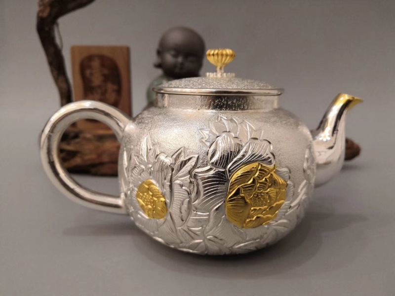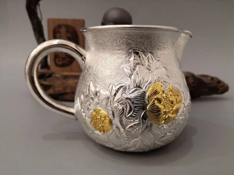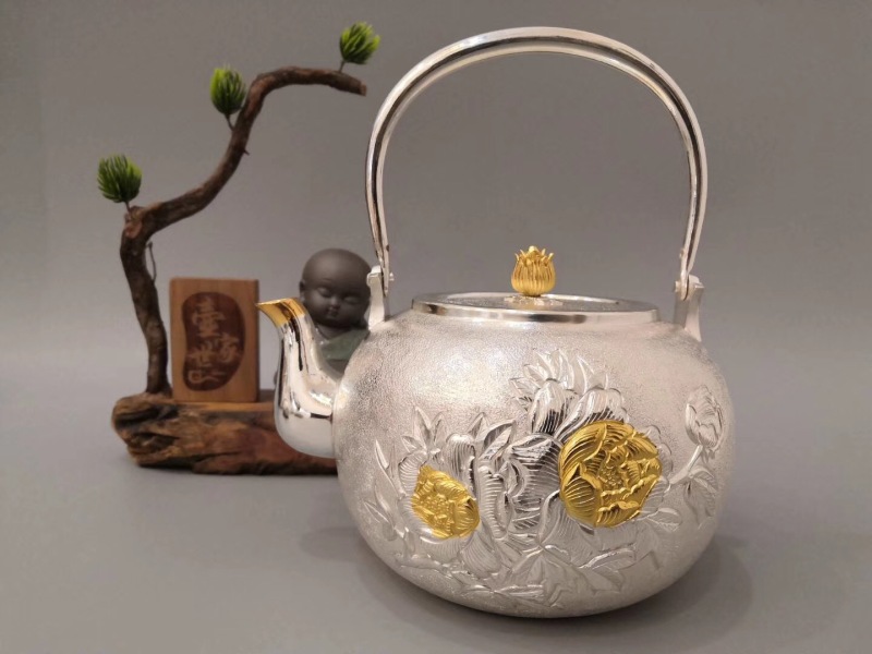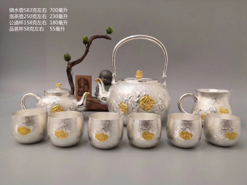 boutique sterling silver tea set silver cup silver teapot sterling silver kung fu tea set water boiling kettle cup loop-handled teapot gift for foreign trade