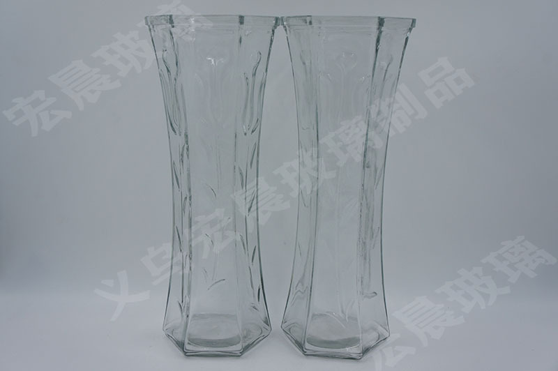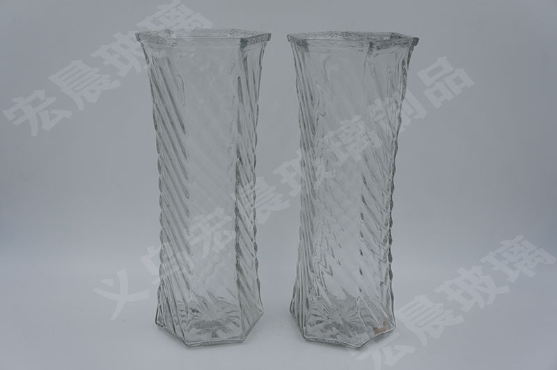 more than factory direct sales style 30cm high hexagonal glass vase transparent spray-painted glass vase lace mouth 中文版
