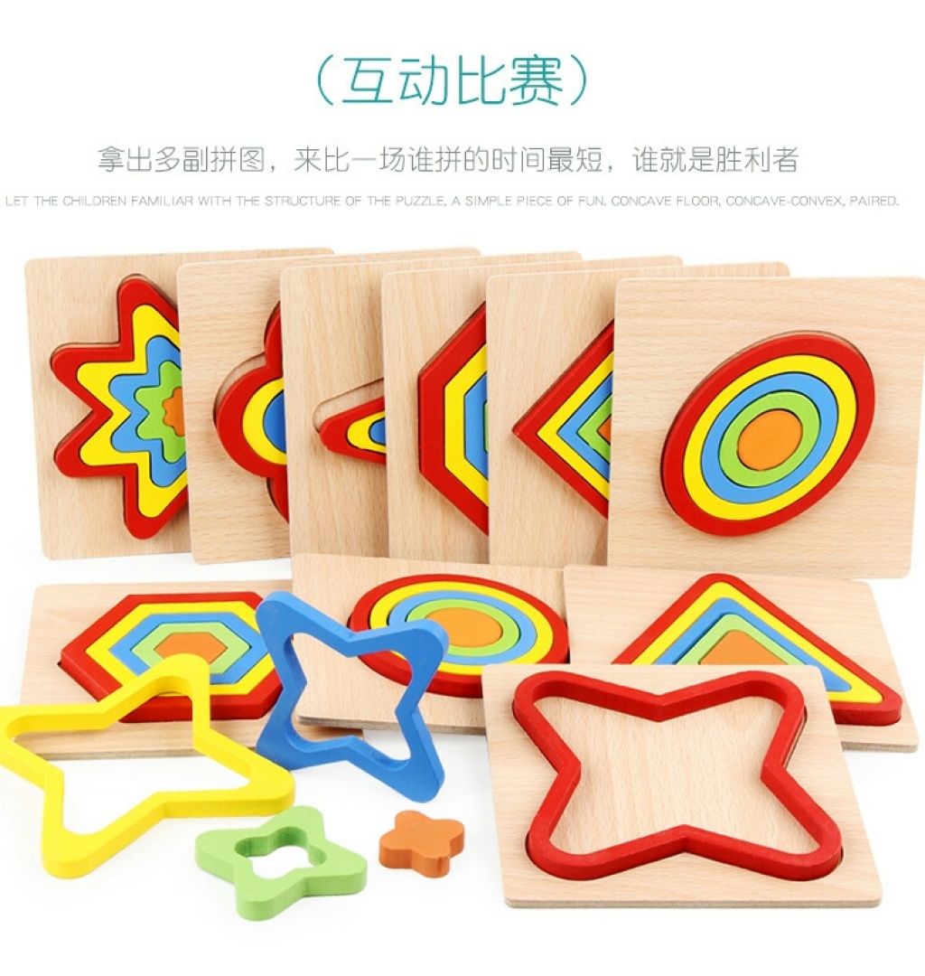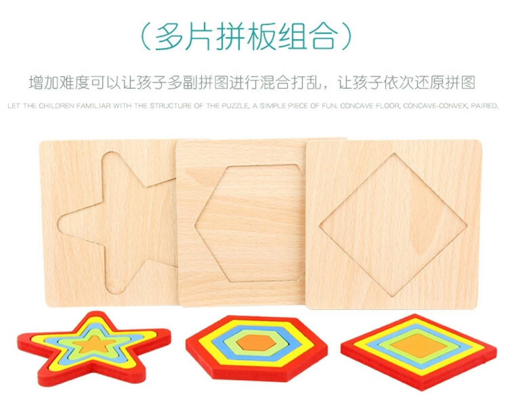geometric shape puzzle color multi-layer ferrule building blocks wooden toys