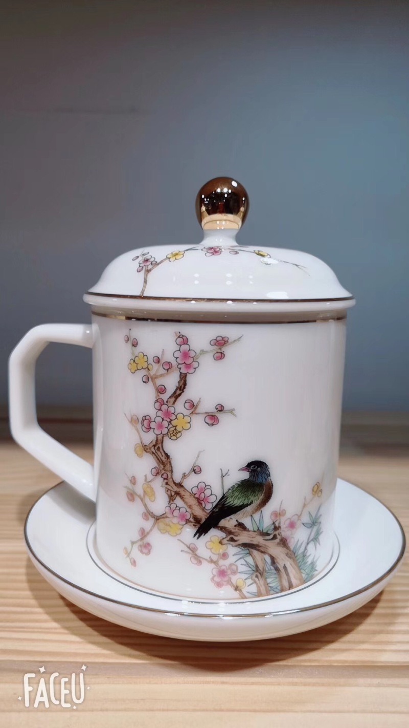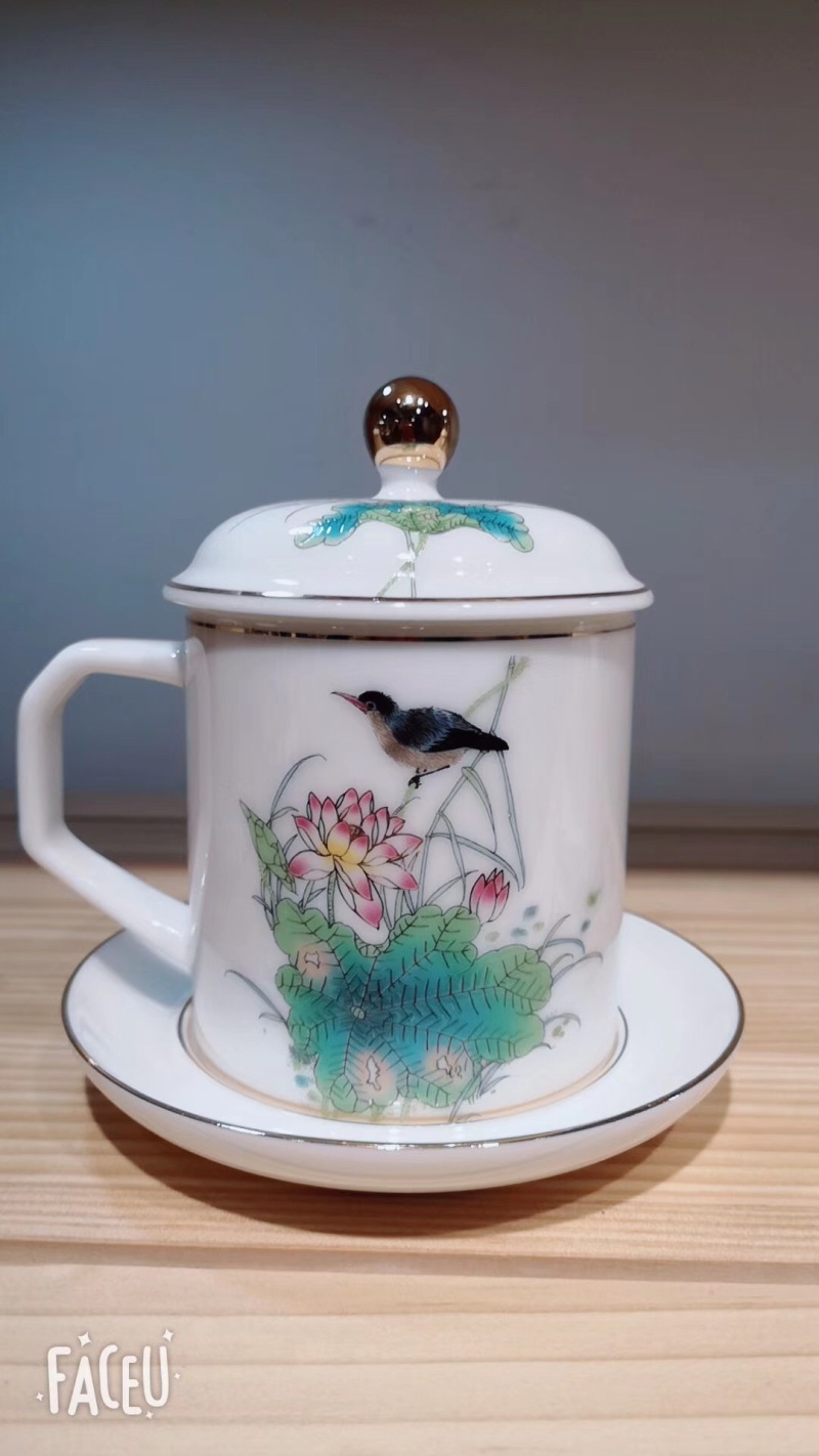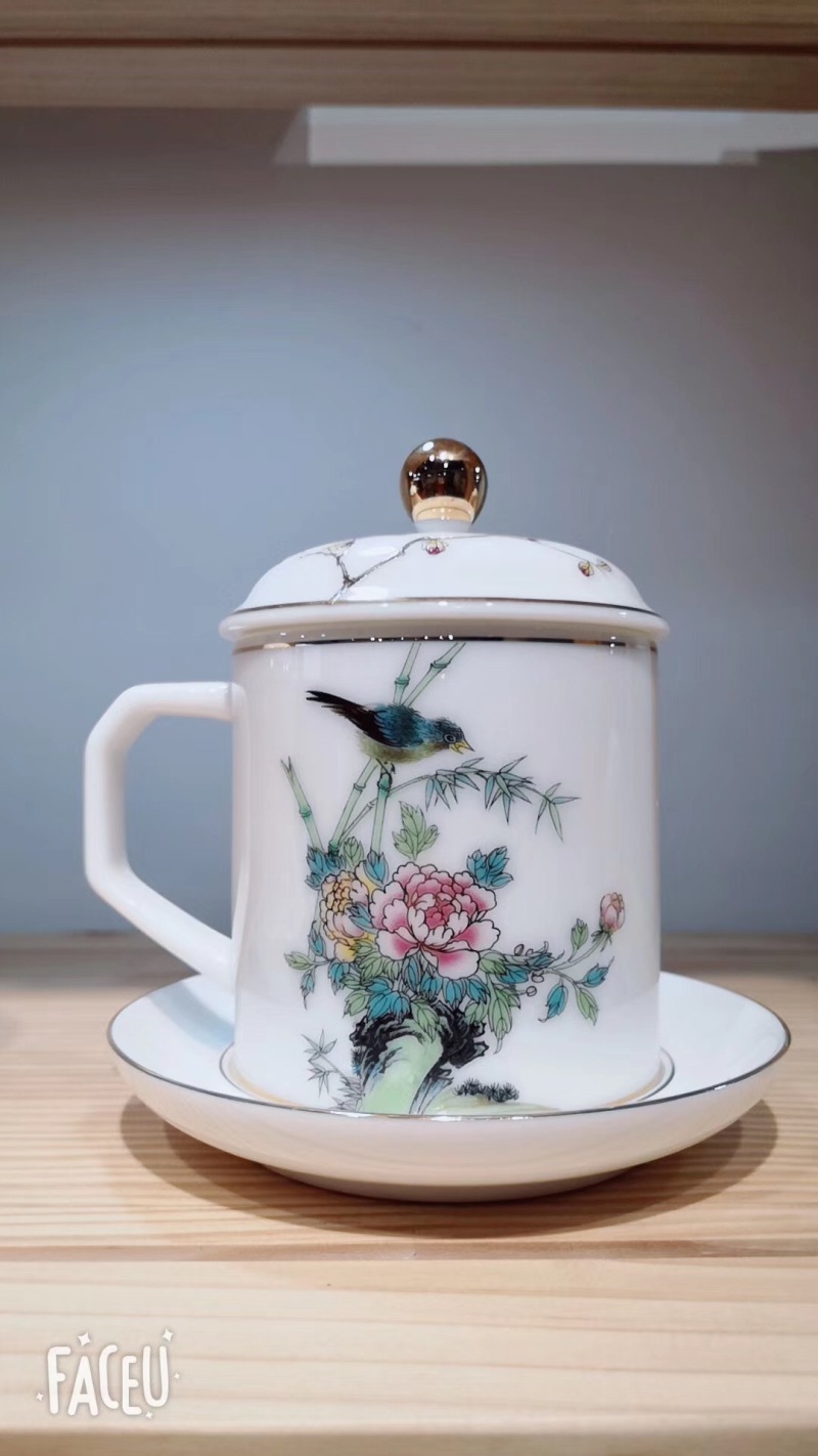 mutton fat jade single cup conference cup office cup cup for water cup teacup bone china single cup gift cup cup cup with cover
