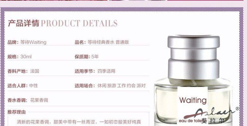 Waiting for the men and women 30 ml perfume lasting, floral, floral and light perfume for private parts