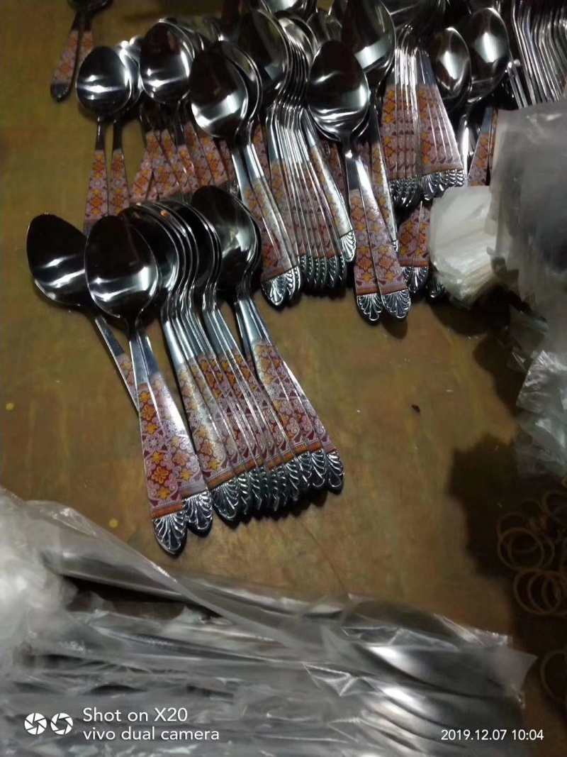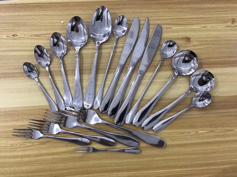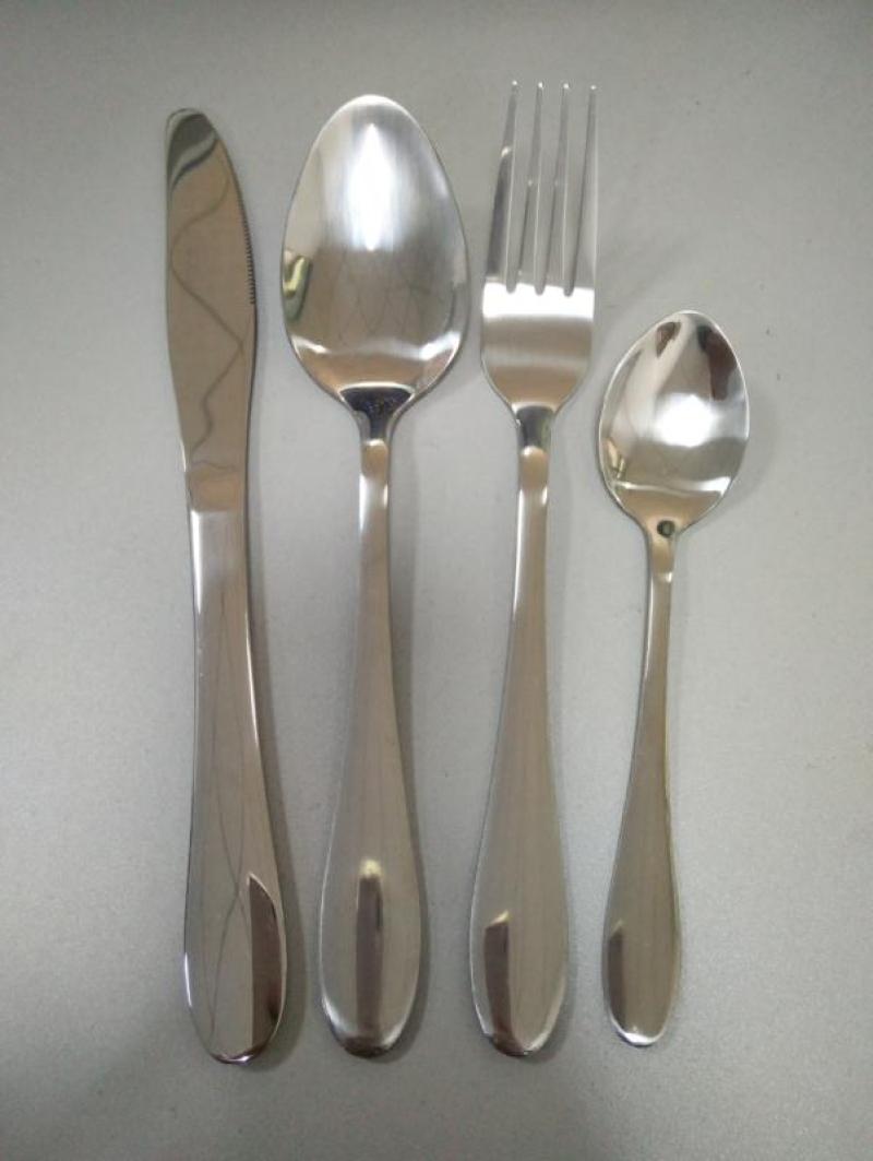 Stainless steel cutlery, stainless steel spoons, stainless steel forks, stainless steel knives, stainless steel tea spoons.