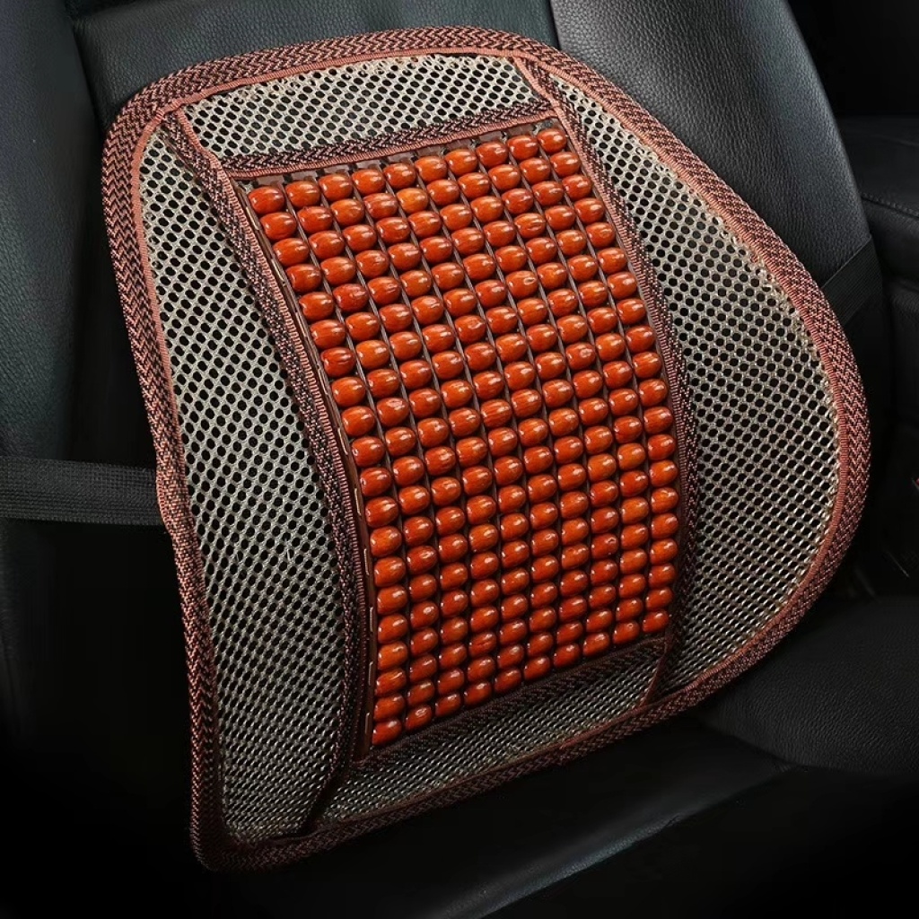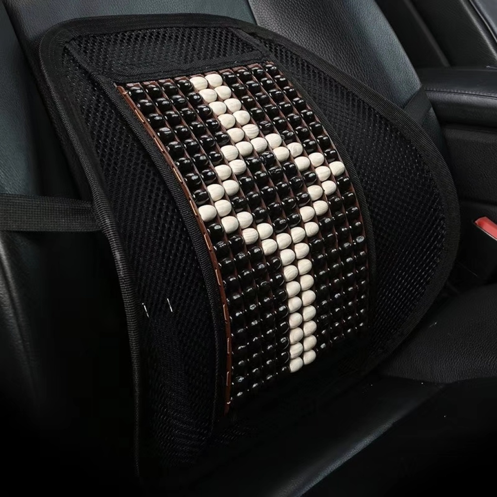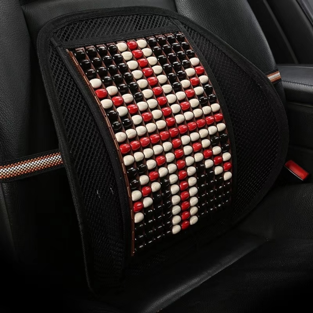 The wooden bead waist fascination on The seat cushion