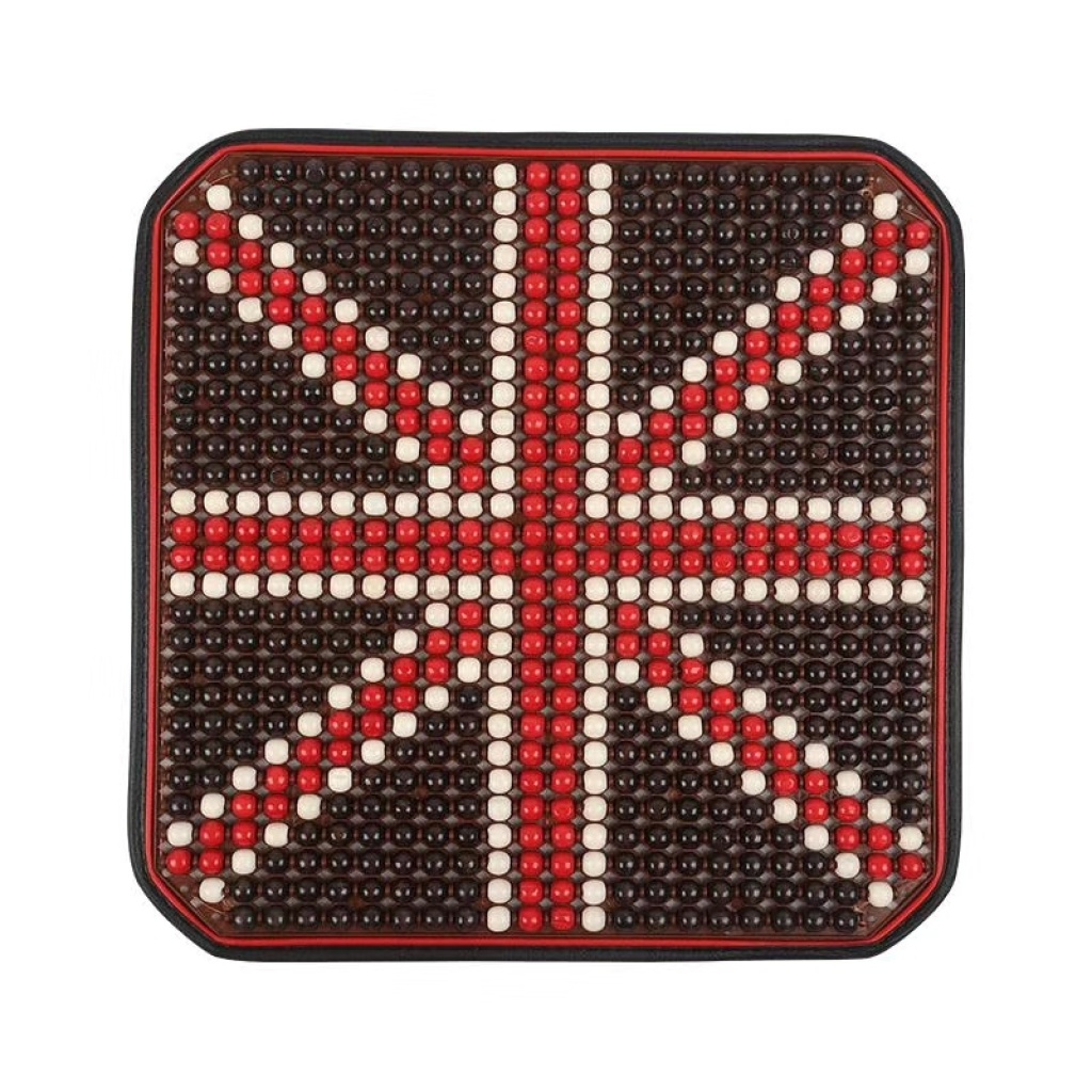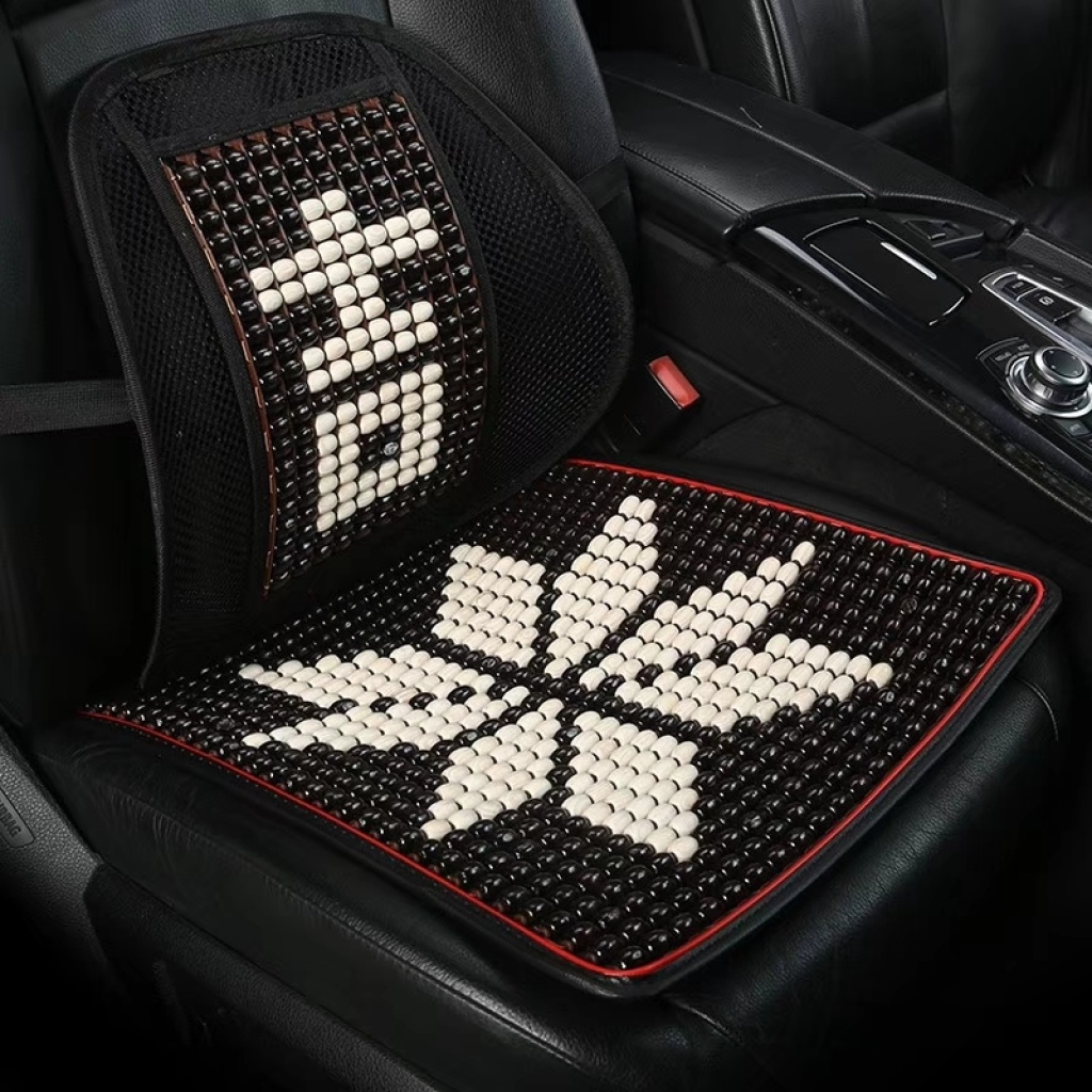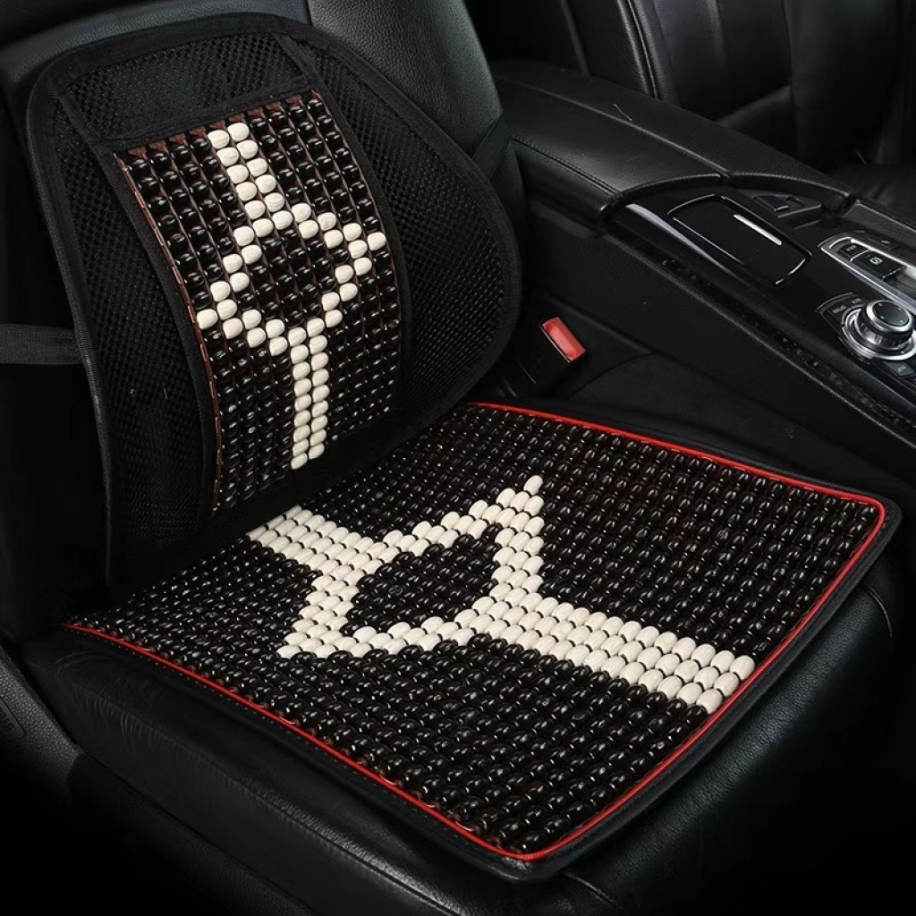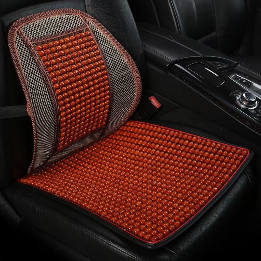 The wooden bead waist fascination on The seat cushion