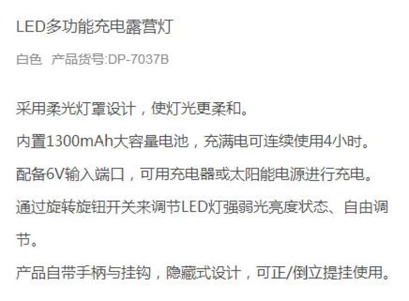 DP-7037B rechargeable camping lamp