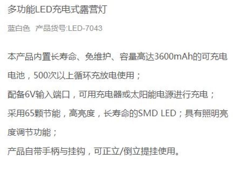 About Product:DP long - term rechargeable camping lamp DP-7043 camping lamp