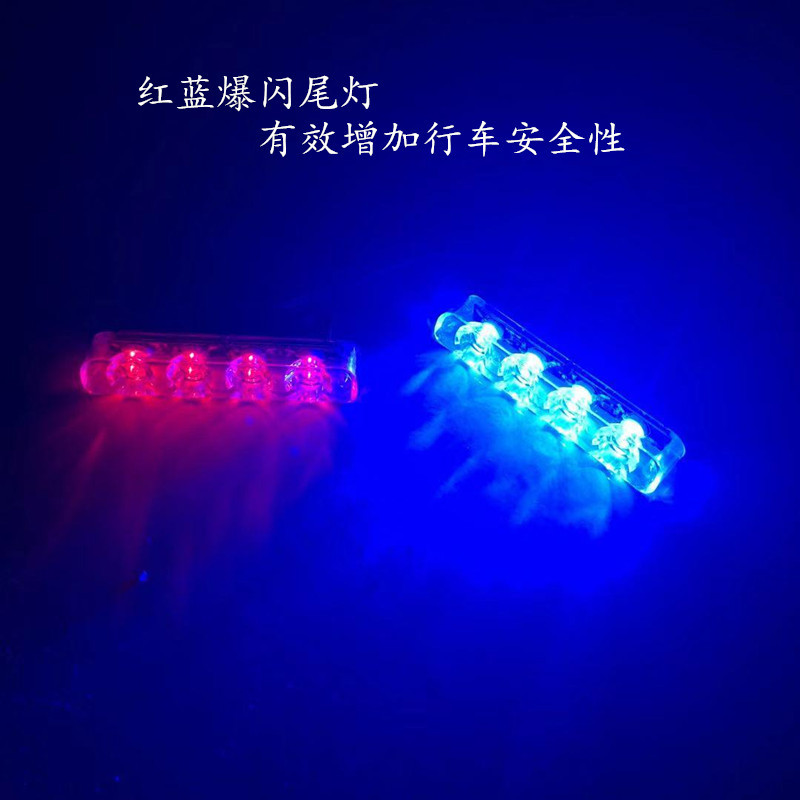 Bracket type LED red and blue flash taillights, brake lights, motorcycle taillights. 12 volts input voltage.