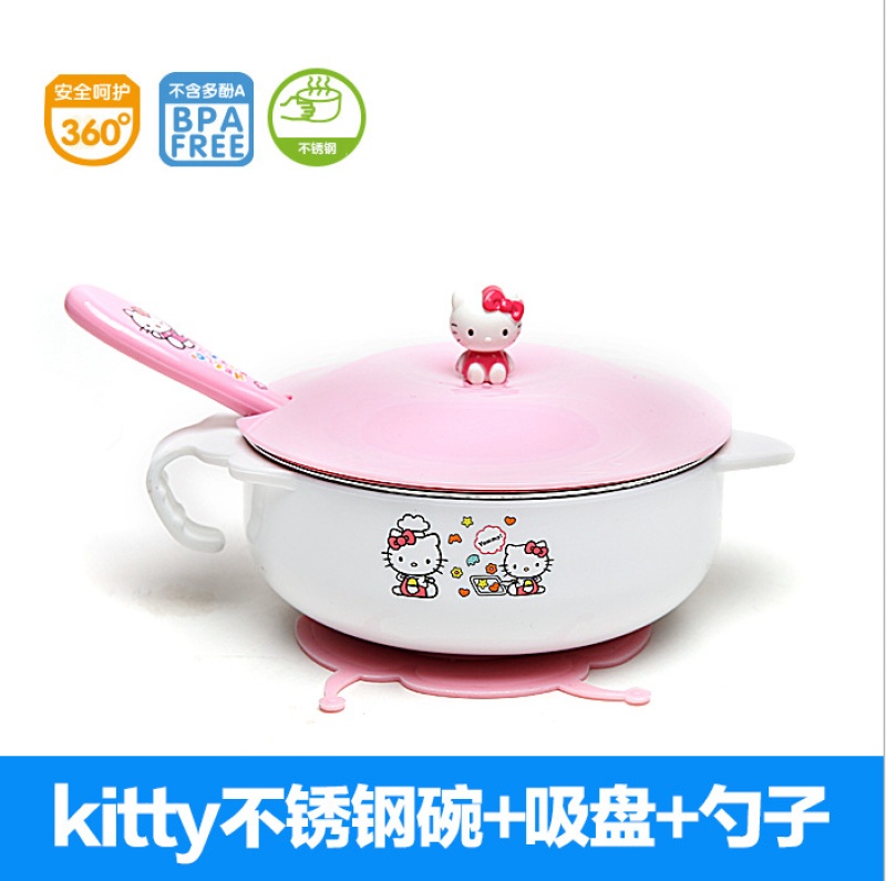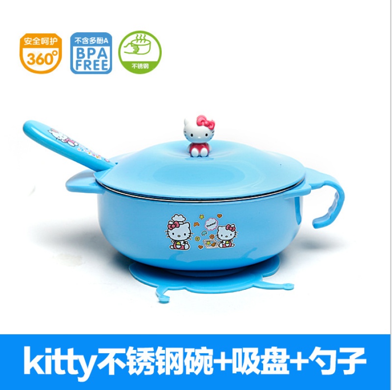 Baby tableware stainless steel bowl children's food suction bowl heat insulation bowl spoon set children's cartoon bowl