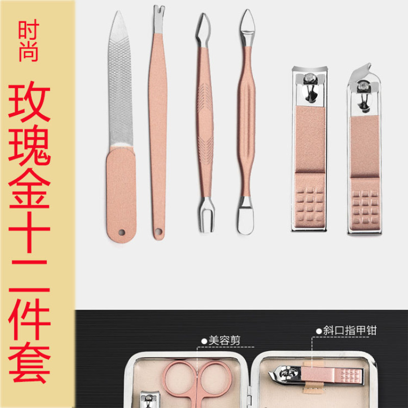 The Source manufacturers direct 12 rose gold nail clippers set of stainless steel accessories manicure set can be customized LOGO