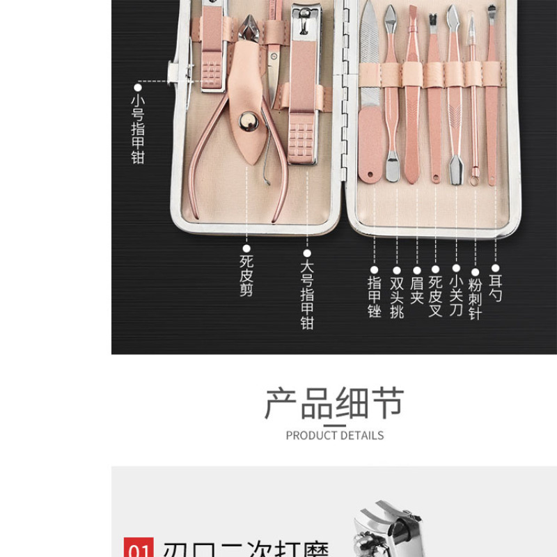 About Product:Zhikang brand solemnly launched a new product, 12 sets of rose gold o the second opening nail clippers sharp and durable, thickened nail file, stainless steel, eyebrow scissors, eyebrow clip, Blade to remove dead skin knife, beauty pliers and other 12 nail tools. There is also a beautiful and strong iron frame leather box, we as always adhere to their quality, continuous efforts, The best products show in front of you, please identify zhikang brand