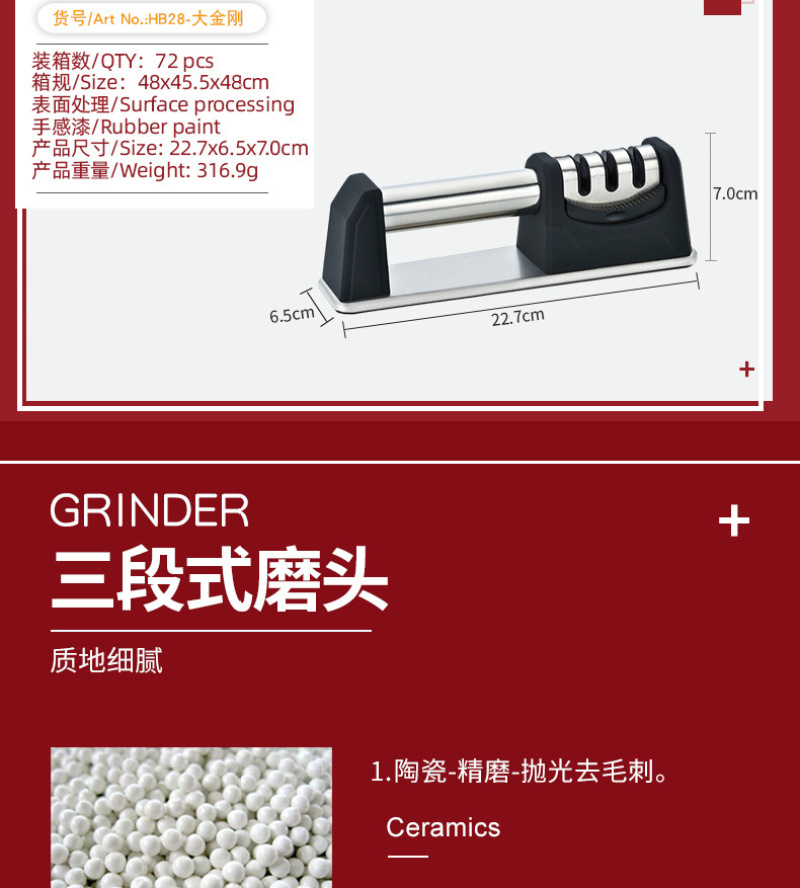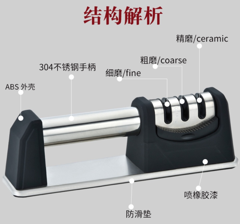 Fixed three-section knife sharpening tool for home use