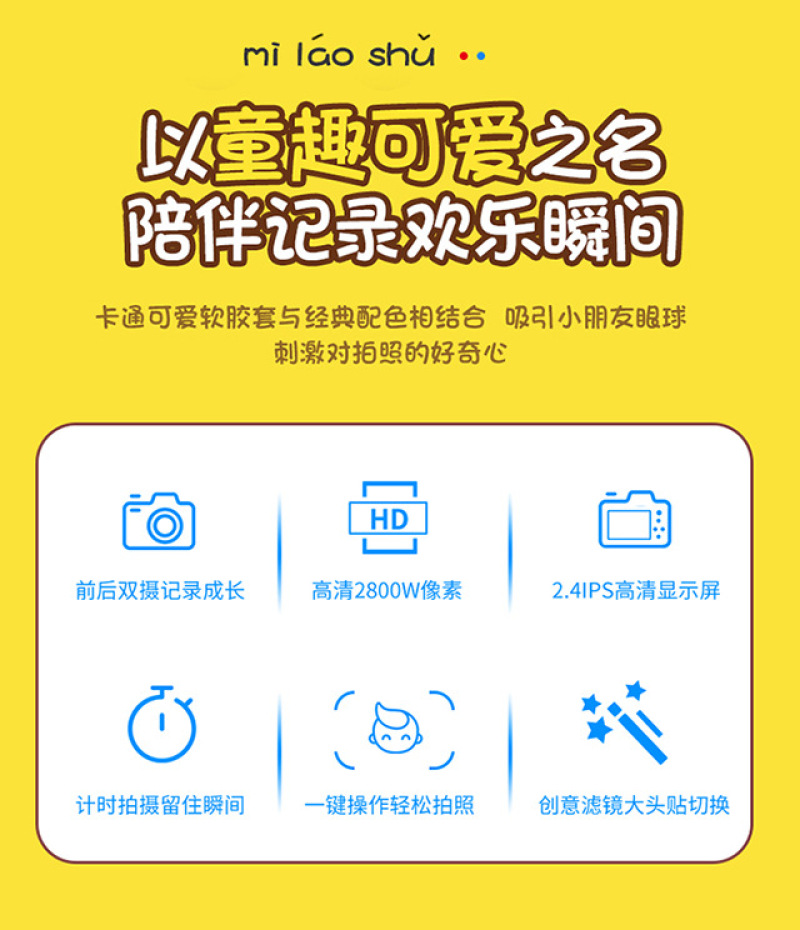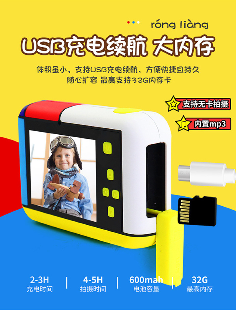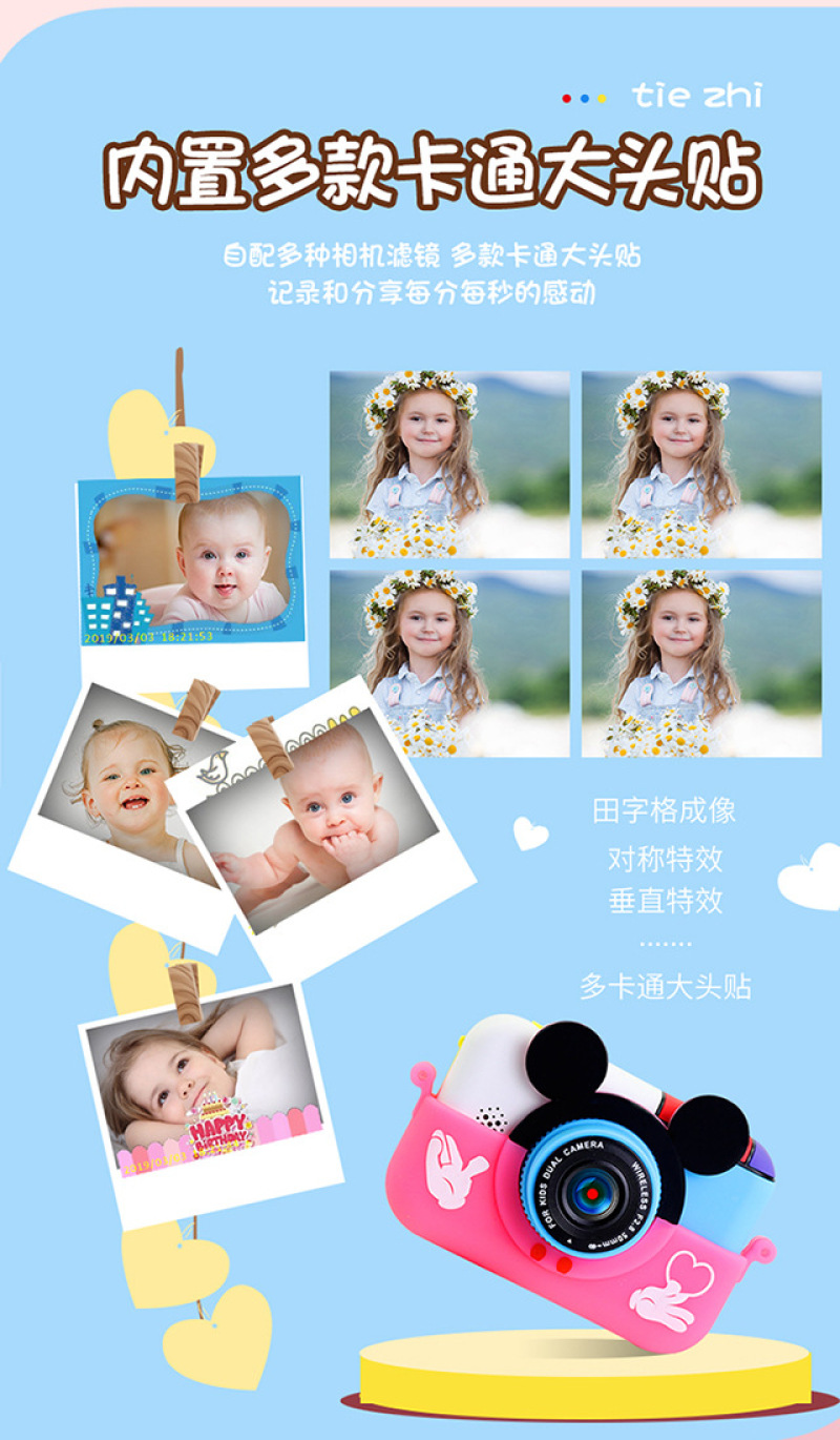 cross-border new arrival hd pixel children's fun dual-camera cartoon mickey camera usb charging