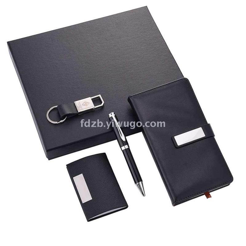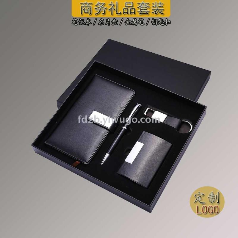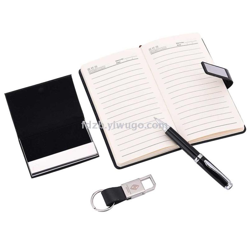Creative notebook + metal ballpoint pen + business card case + key chain set business notebook gift set
