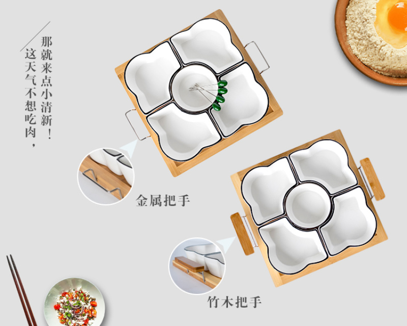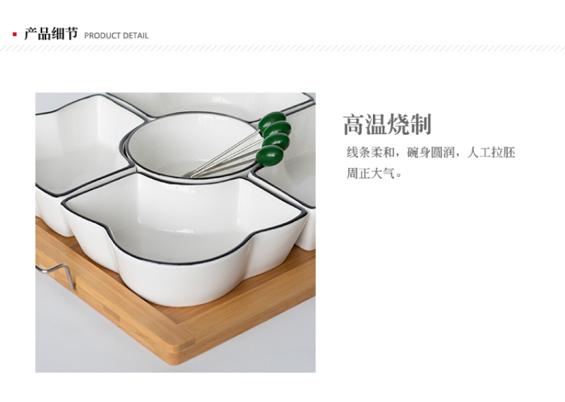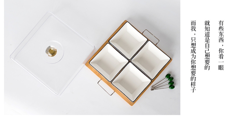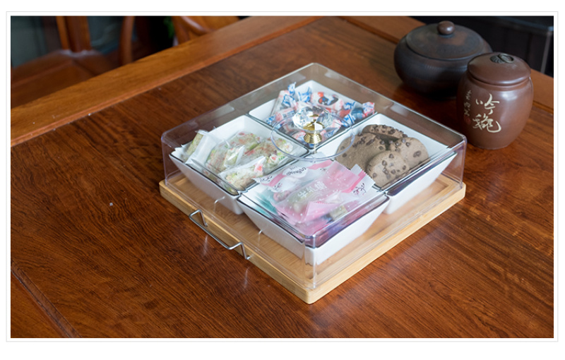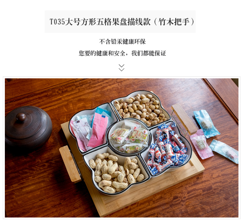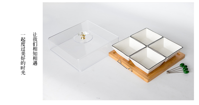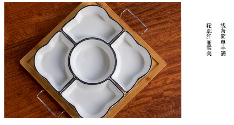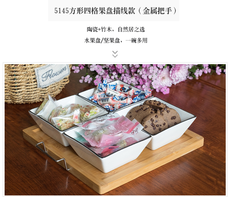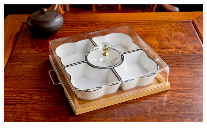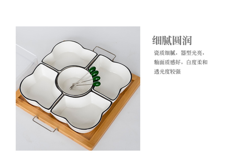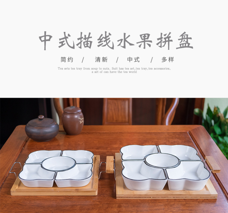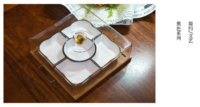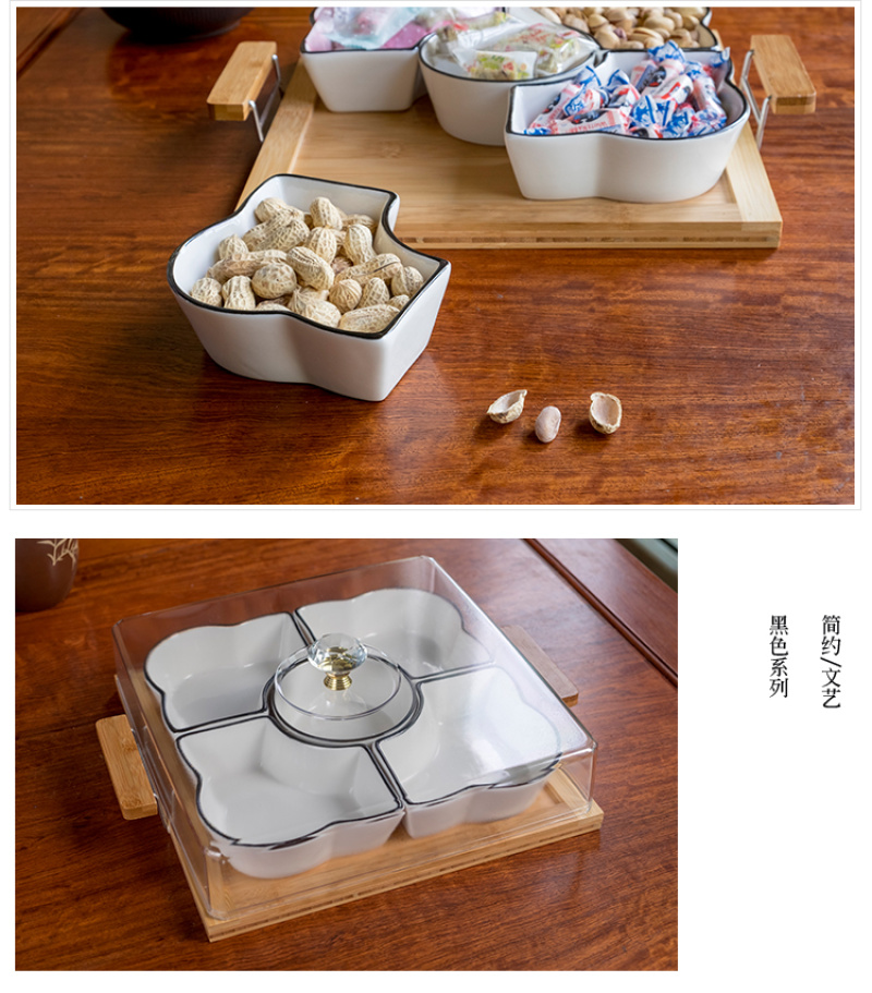 Chinese style fruit bowl sitting room creative ceramic fruit bowl with cover multi-functional personality line black line partition dry fruit bowl