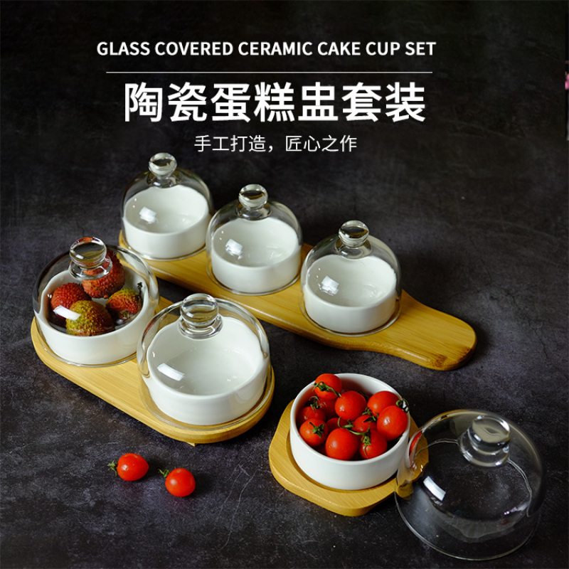 Baked cake pudding mug glass lid cake bowl plate dessert bowl fresh fruit dessert plate