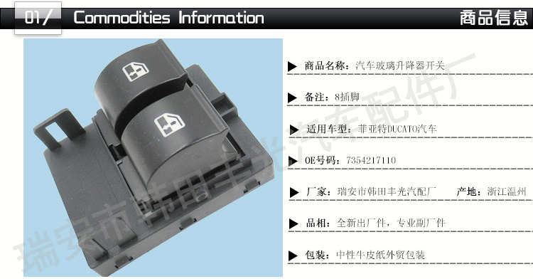 factory direct sales for fiat glass lifter switch glass door motor operated switch 7354217110