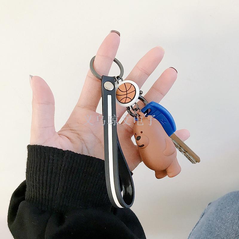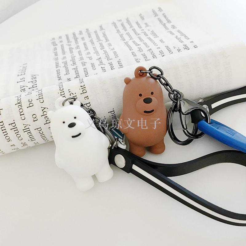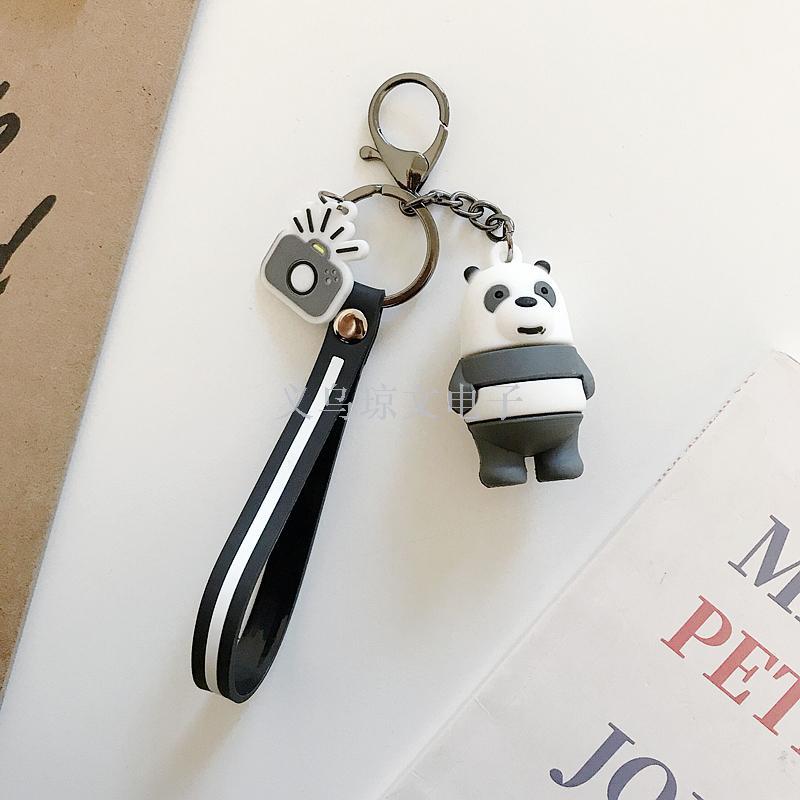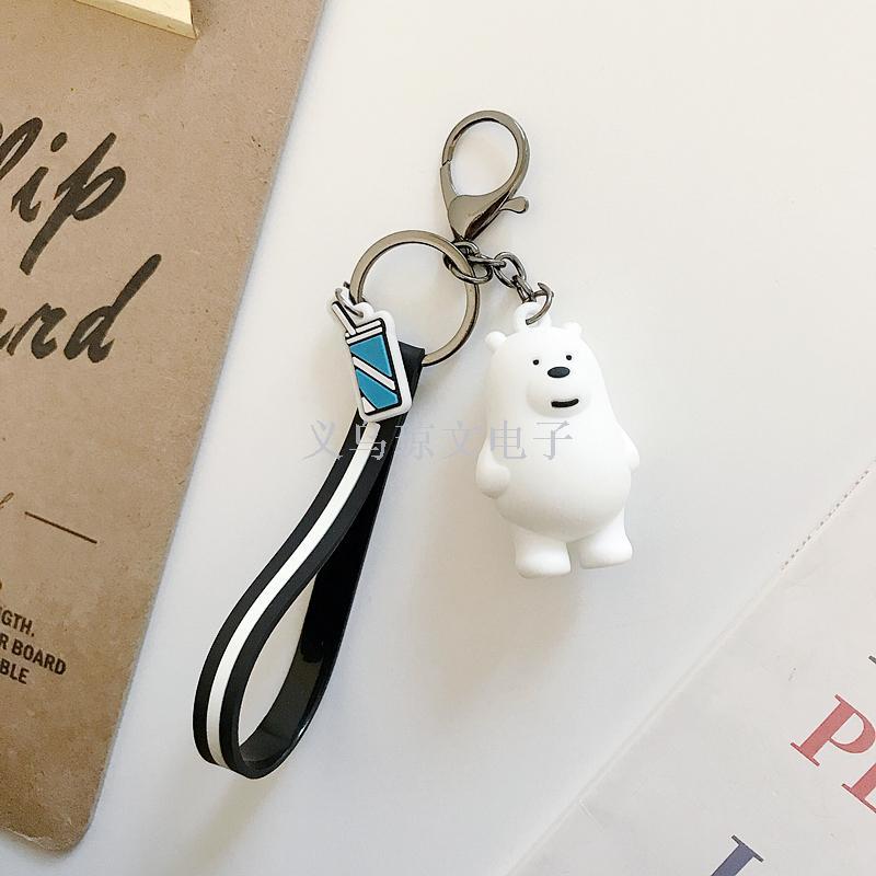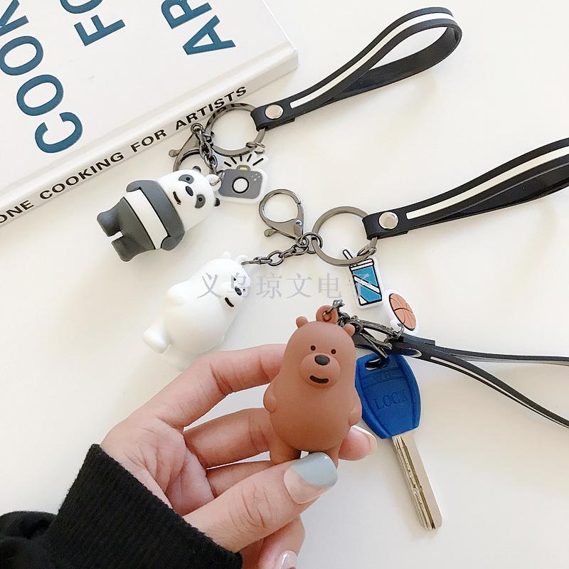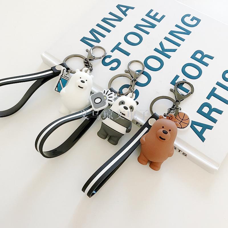 Korean Cute Our Naked 3 Foodie Bears Kit Keychain Car Keychain for Men and Women