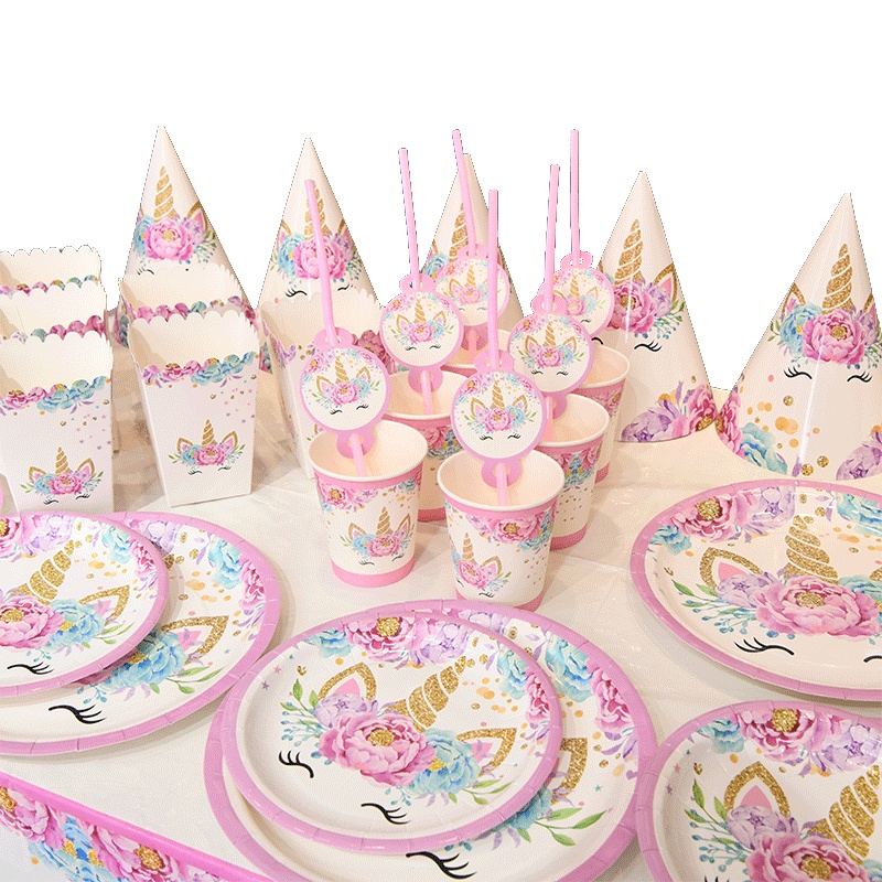 Birthday party disposable, unicorn-themed paper eco-friendly set for children's Birthday party tableware