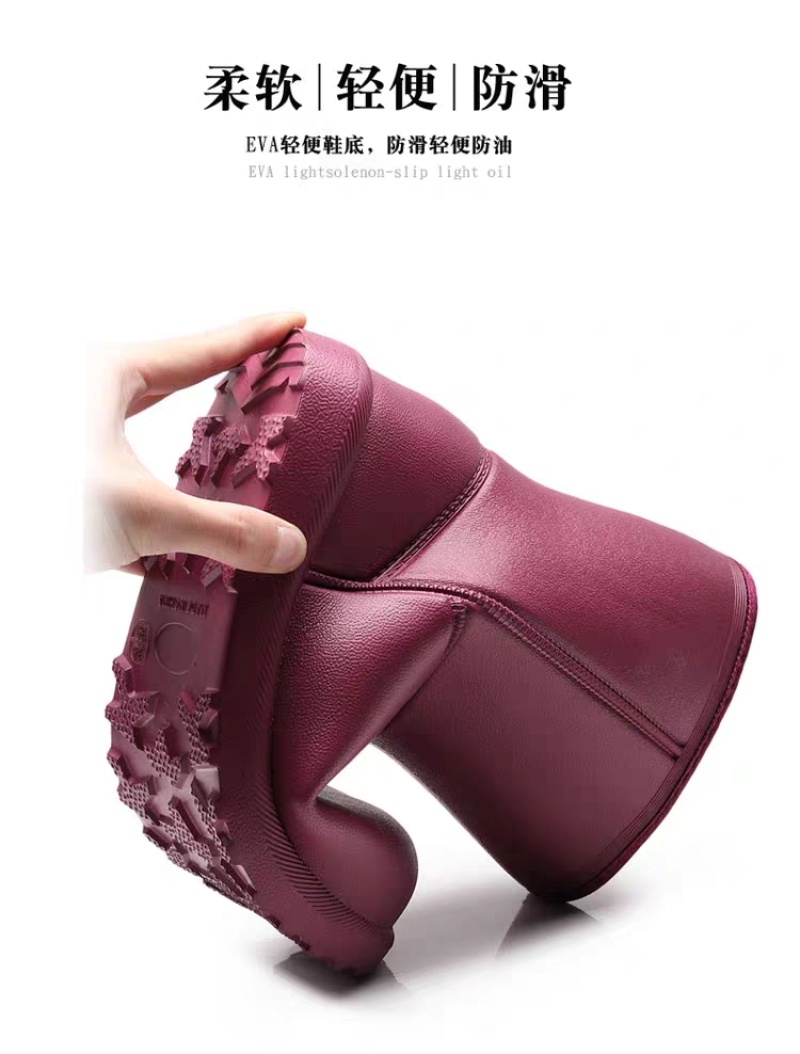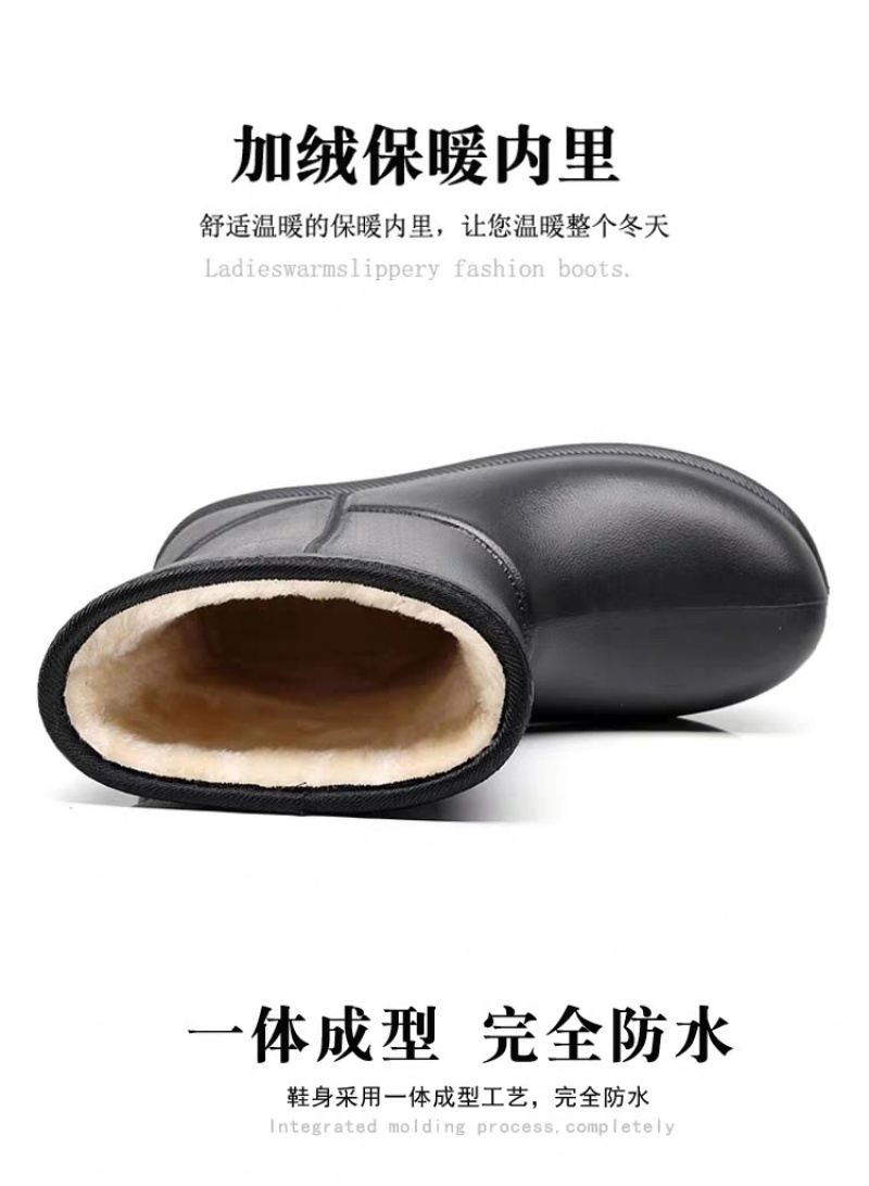 winter fleece-lined rain boots women's warm mid-calf cotton rain boots thickened overshoes non-slip cotton-padded water boots