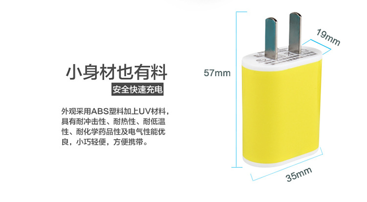 1、全球通用充电器,快速充电,携带方便,易于使用,体积小巧外型美观,性能优异。6、输出电压:DC5V±5%,输出电流:1000MA