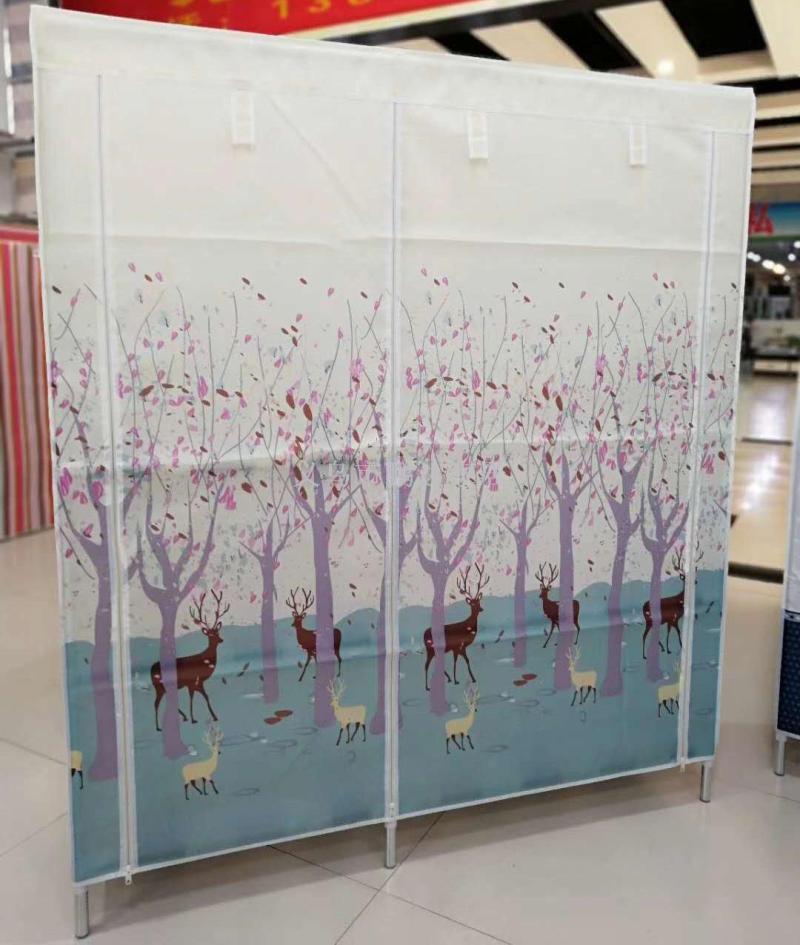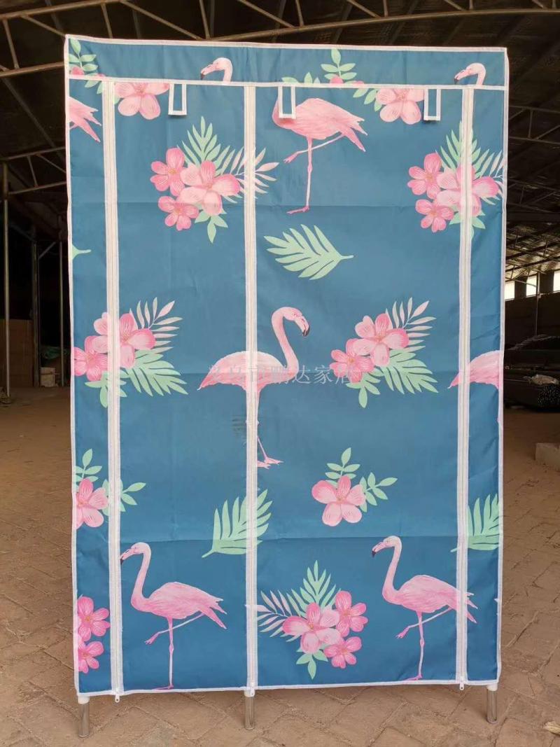 2019 new Korean moisture-proof reinforced wardrobe25CM thick steel tube frame wardrobe simple peach flannelette wardrobe