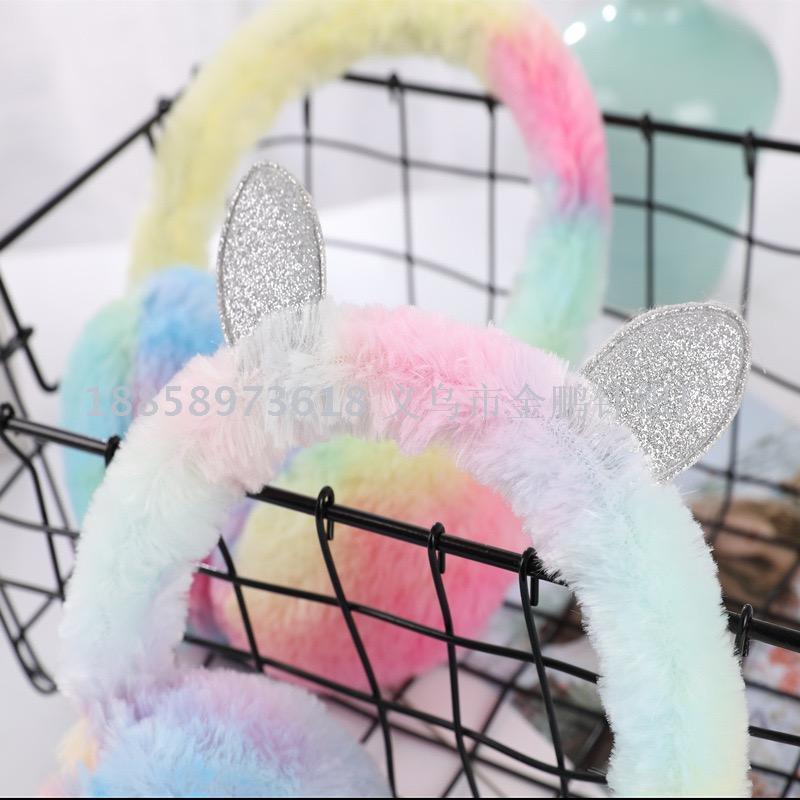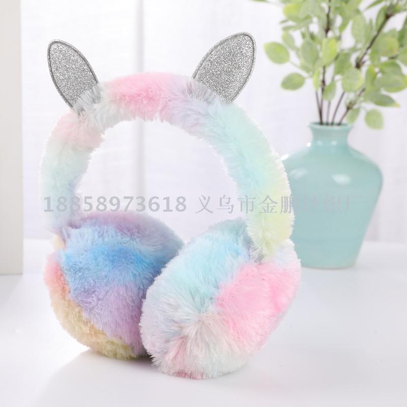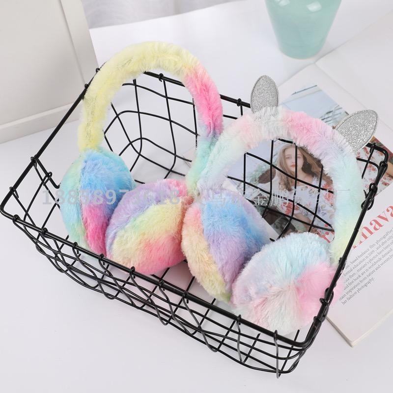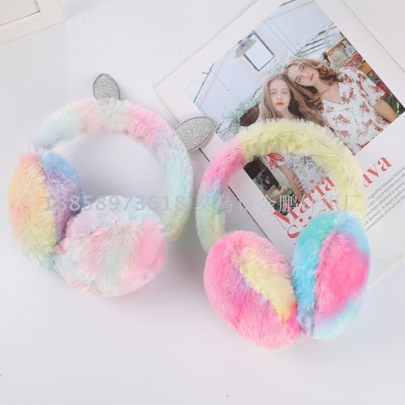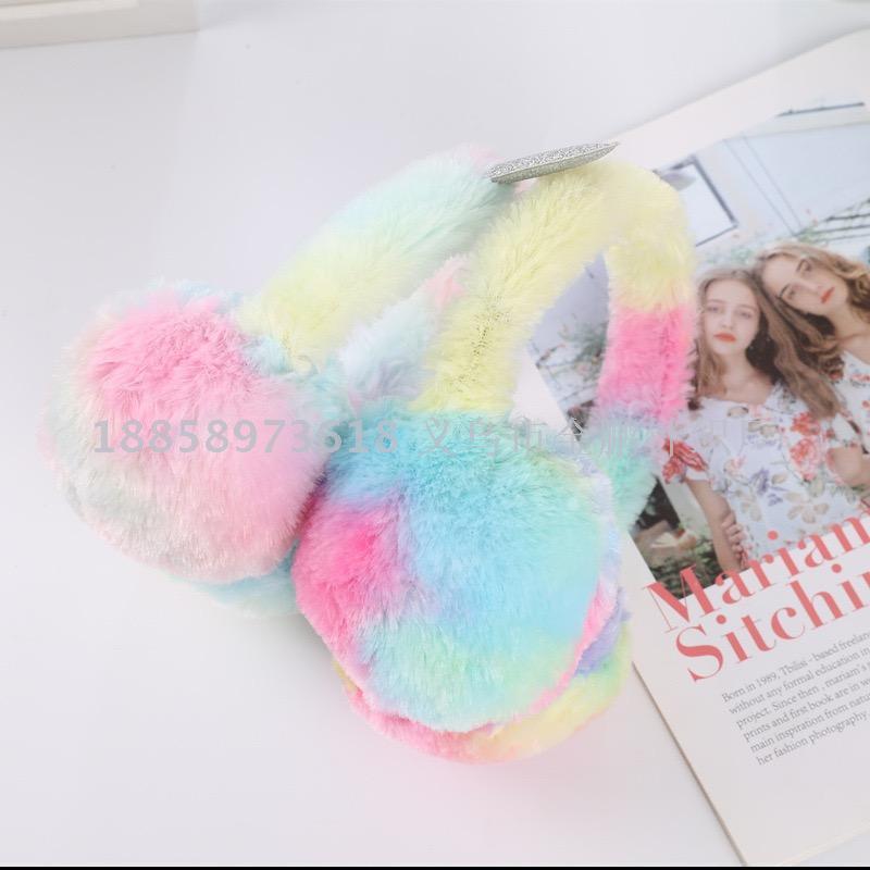 winter colorful tie-dyed plush children earmuffs colorful rabbit rainbow warm bread earmuffs
