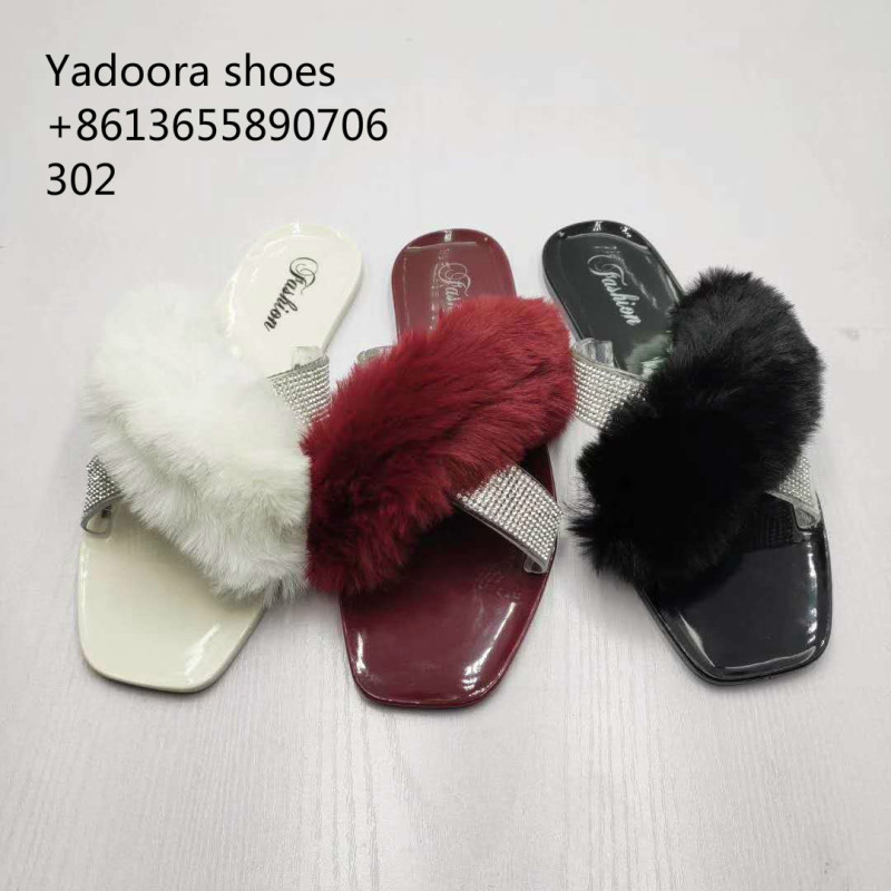 spring and autumn new furry women's crystal shoes