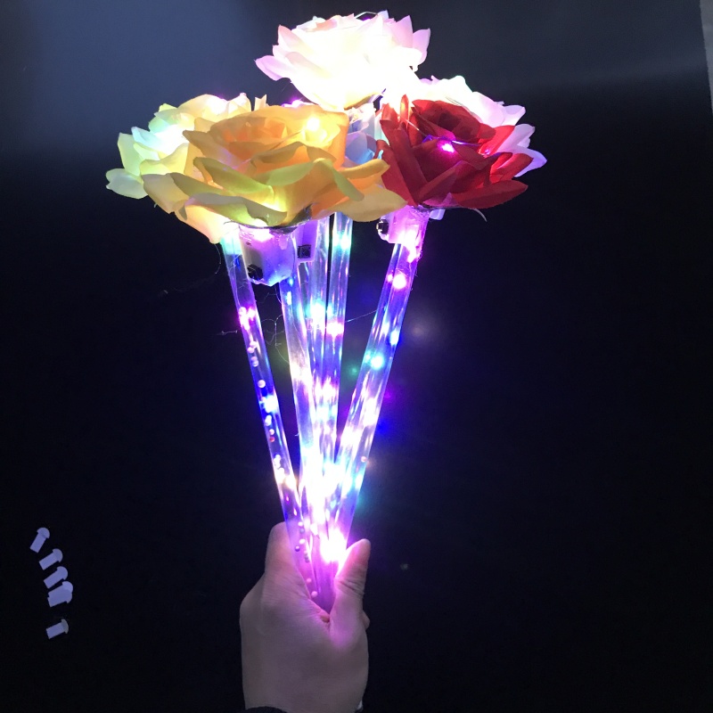 Product Name: Glowing Rainbow Rose Product size: 37cm * 10cm Product packaging; 10 pieces per unit Product minimum order quantity; 600 Product features: Three functions; Blinking, Slow Blinking, and Flash; Wholesale includes button cells.