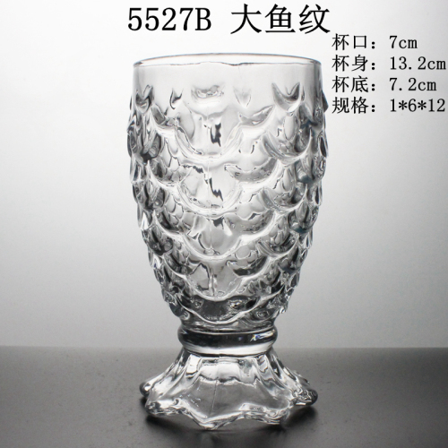 5527b Big Fish Pattern Glass Cup Goblet Glass Printing Cup Glasscup Glassware