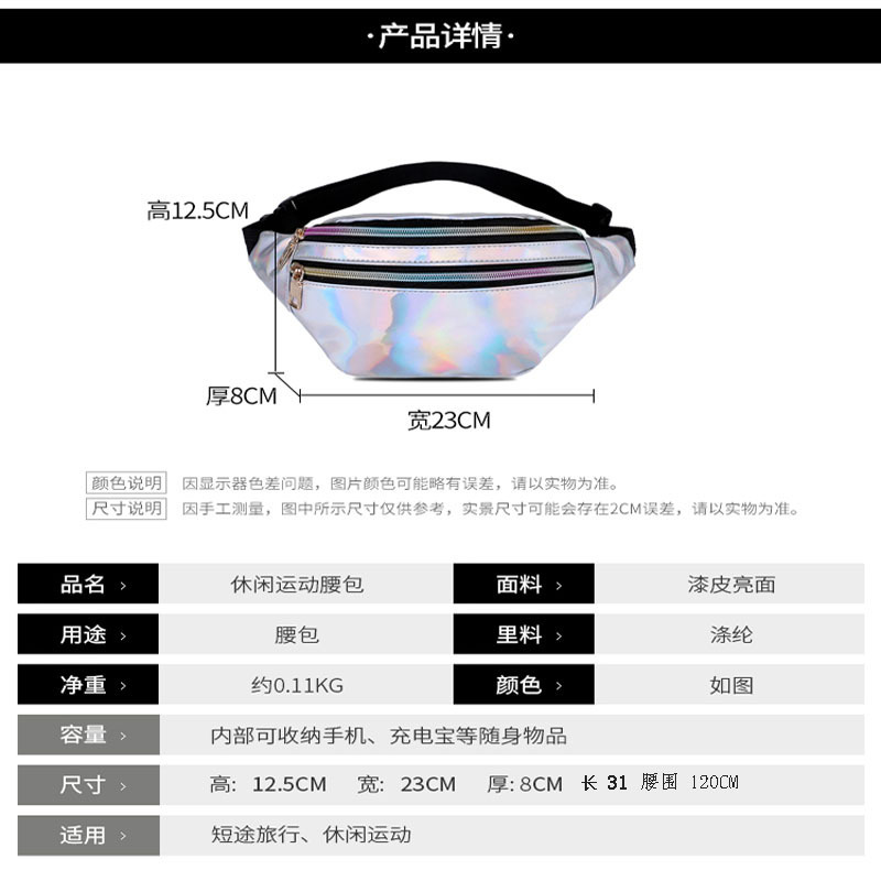 2020 New Cross-Border Hot Selling Laser Waist Bag Pu Pocket Multi-Functional Color Women's One Shoulder Crossbody Support Customization